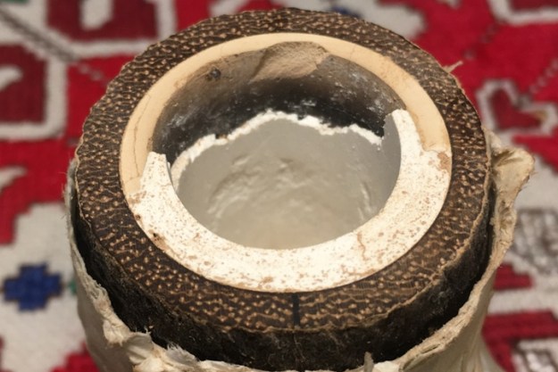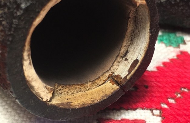 With the carbon layer cleared and the Meer surface exposed, I find an almost perfectly uniform hairline crack, which almost looks like a seam, halfway down the chamber running in a full circle around the circumference of the chamber. It is so uniform that it looks like the Meerschaum was constructed in halves – a lower half bowl and the upper half ring.