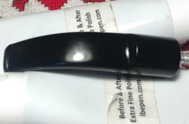 I then apply Before & After Fine and Extra Fine Polish to further clean and condition the vulcanite stem. In succession I apply the polishes with my fingers and rub them in. Between each coat, I allow some time – about 10 minutes, for the polish to absorb. I then wipe the stem clean using paper towels and then buff some with a microfiber cloth and put the stem aside.