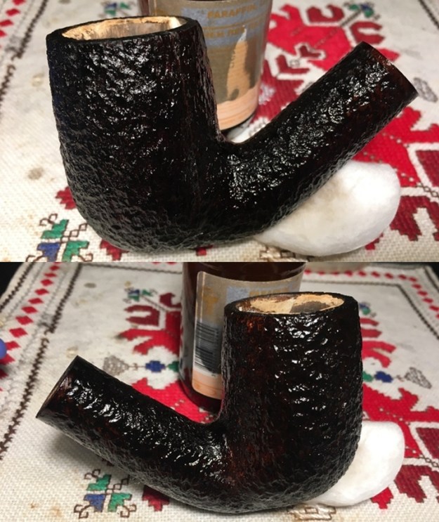 I’m getting ready to head to the Black Sea for a few days on the beach with my wife for some R&R from our work here in Sofia. Before putting the stummel aside, I apply paraffin oil to the pipewood to help rehydrate the blasted or perhaps, blasticated pipewood. It looks good and gives me a sneak peak of what the bowl will look like in the later stages of the restoration – I like what I see!