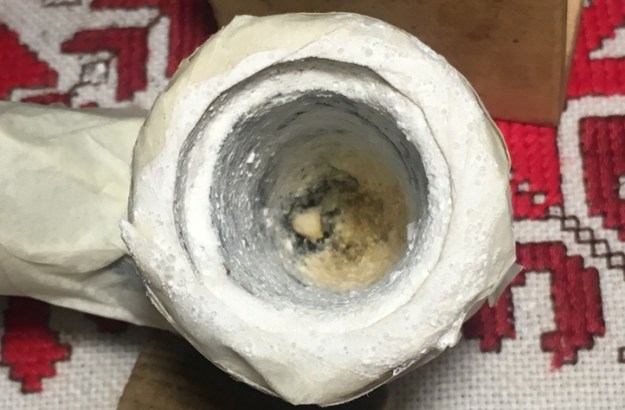 After a few more hours, the first picture shows the state of the Ole Timer mix. With my finger, I again add a coat of the mixture to the chamber and let it set for several hours for it to set up, dry and harden more.