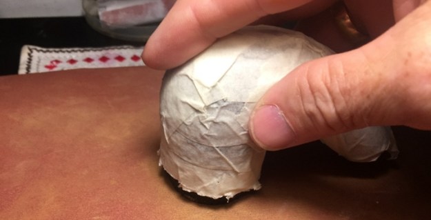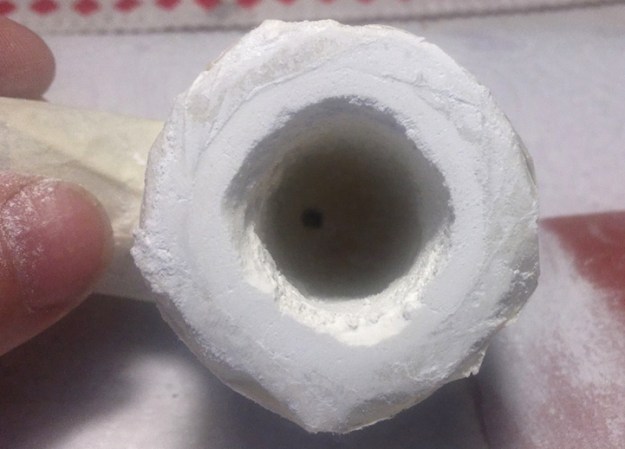 One more time I bring out the chalk and egg white mixture and after mixing it, I apply more on the rim with my finger to close the gaps and then let it set for a few hours to harden.