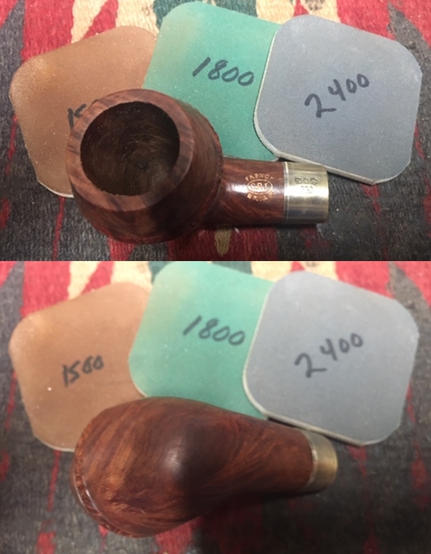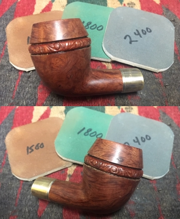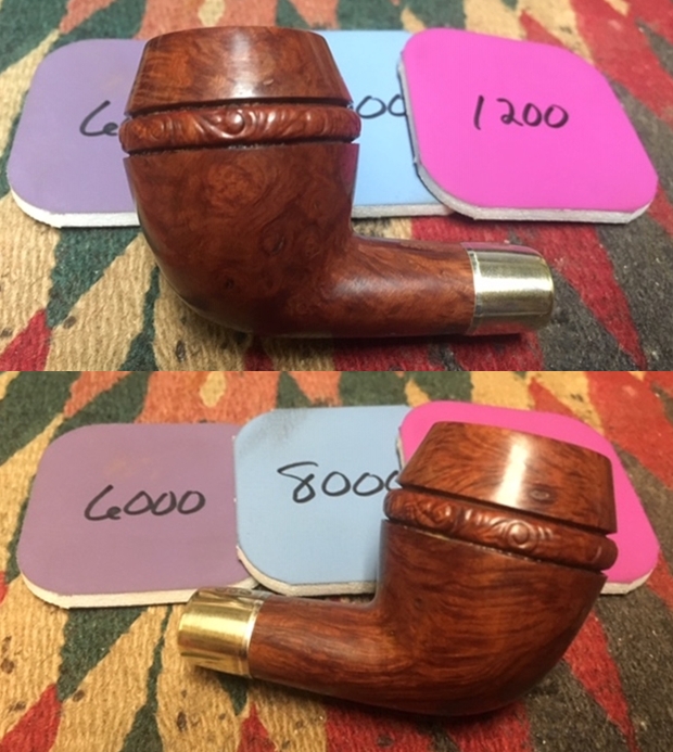 One of the nice features of working on a NOS pipe is that the internals are very clean. I ran a pipe cleaner through the airway in the stem and shank just to remove dust. I did the same in the mortise with a cotton swab and the internals were finished. I directed my attention to polishing the briar with micromesh sanding pads – wet sanding with 1500-12000 grit pads. I wiped the bowl down after each pad with a damp cloth to remove the dust.