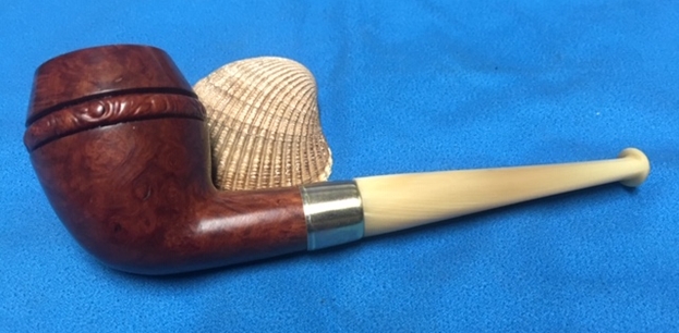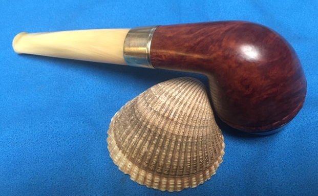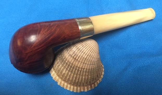 I love these old C.P.F. pipes. There is some serious thought that they were carved by European trained craftsman who were skilled pipemakers. These pipemakers were brought to the US by the C.P.F. Company to make pipes. Many of the shapes, bands and stems have such high quality workmanship involved that I really think there is truth to this story. This is little straight shank, horn stem Rhodesian is a real beauty. There may be one small fill on the bowl cap just above the decorative bead on the right side of the bowl. I polished stem and the bowl with Blue Diamond polish on the buffing wheel carefully avoiding the stamping on the shank. I gave the bowl and the stem multiple coats of carnauba wax. I buffed the pipe with a clean buffing pad to raise the shine. I hand buffed it with a microfiber cloth to deepen the shine. The pipe polished up pretty nicely. The contrasting grain really began to stand out; it seemed to take on life with the buffing. The rich contrasting brown colour works well with the polished striated horn stem. The finished pipe has a rich look that is quite catching. Have a look at it with the photos below. The shape, finish and flow of the pipe and stem are very well done. The dimensions are Length: 5 ¼ inches, Height: 1 7/8 inches, Outside diameter of the bowl: 1 1/4 inches, Chamber diameter: 3/4 of an inch. This one will be joining my collection as it fits in the C.P.F. niche group that I have been building. The shape and feel in the hand is perfect. Now I have to make a hard decision – do I leave it unsmoked or do I load it up with some aged Virginia and break it in. Thanks for walking through the restoration with me as I restored and reworked this old Rhodesian from 1884-1898. It is always a treat for me to work on a piece of pipe history especially when I have learned a bit of the story behind it.