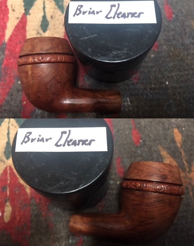 I am still experimenting with Mark Hoover’s Briar Cleaner to see what I think of it as a possible replacement for my usual Murphy’s Oil Soap scrub. I rubbed it onto the bowl and worked it into the grain of the briar. I wiped it off with a clean cloth. There was still a coat of grime and grit from the cleaner left behind so I rinsed it with warm water to remove that and dried it with a microfiber cloth. I am really not sure if this is any better than the Murphy’s but I am committed to working with it. I took photos of the pipe at this point in the process.