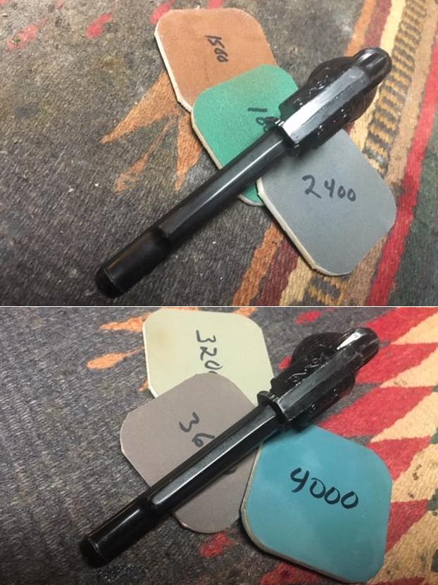One of the nice features of working on a NOS pipe is that the internals are very clean. I ran a pipe cleaner through the airway in the bowl and shank just to remove dust and the internals were finished. I directed my attention to polishing the briar with micromesh sanding pads – wet sanding with 1500-12000 grit pads. I wiped the bowl down after each pad with a damp cloth to remove the dust.