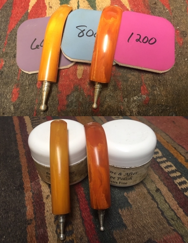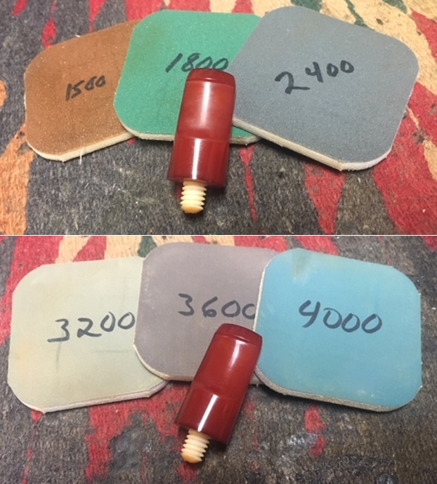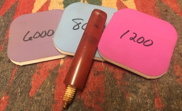 I wet sanded the stem with 1500 -12000 grit micromesh pads to polish it. I wiped it down with Obsidian Oil on a cloth after each sanding pad. After the 12000 grit pad I wiped the stem down a final time with Obsidian Oil and set it aside to dry.