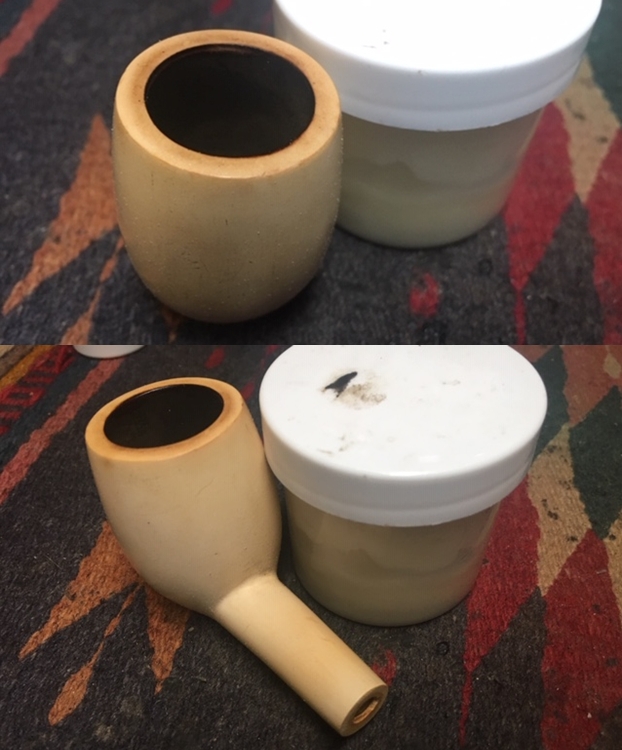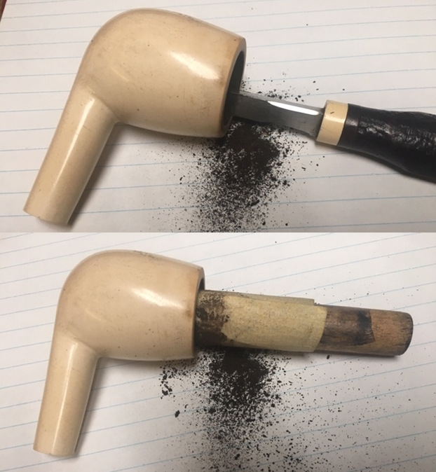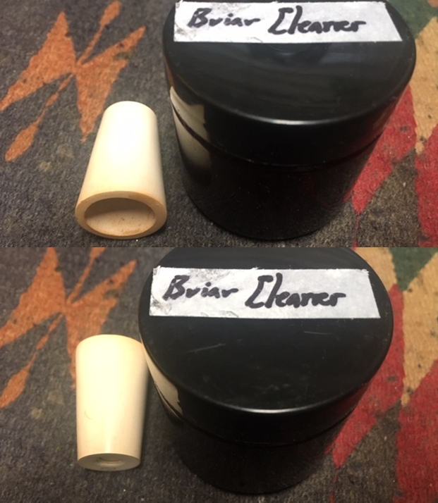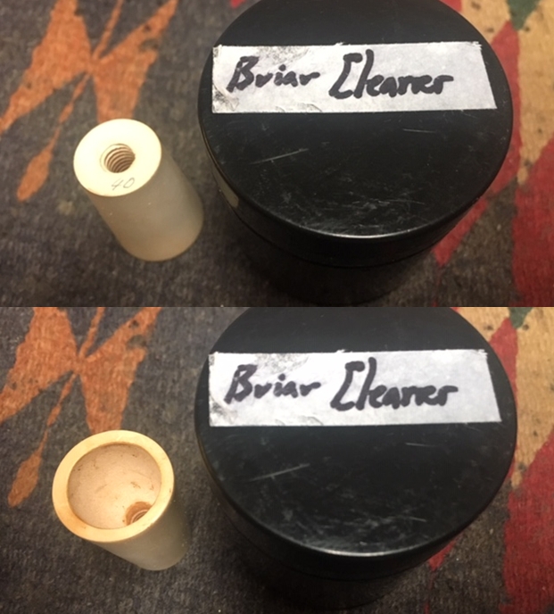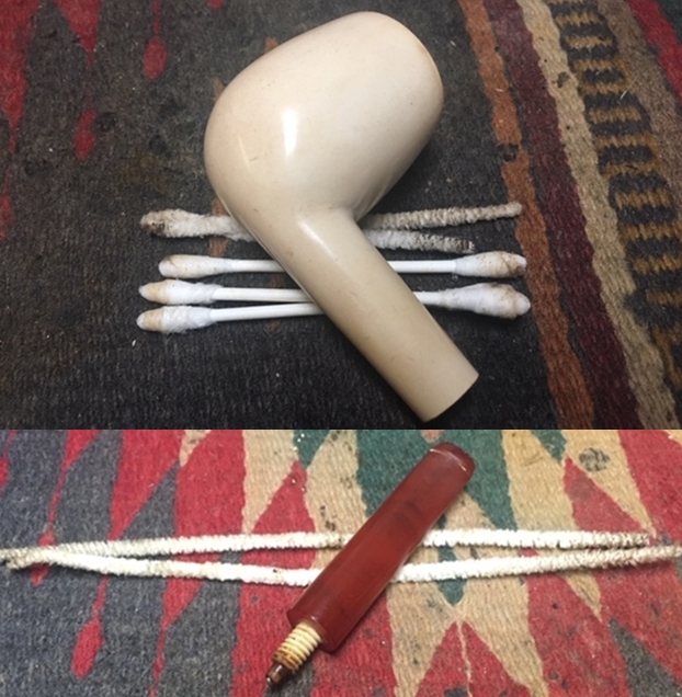 I cleaned out the internals of the airway in the cigar holder and the stem. I used alcohol, cotton swabs and pipe cleaners to remove the grime. There was not much grime and it cleaned up quickly.