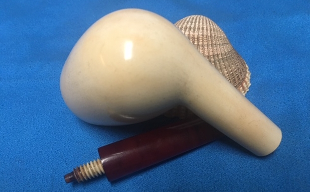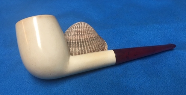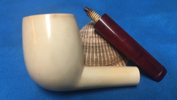 I put the meerschaum holder and stem back together. I polished the cigar holder with Blue Diamond to remove the remaining minute scratches in the briar and the Bakelite. I gave the holder and stem several coats of Conservator’s Wax and buffed it with a clean buffing pad to raise the shine. I hand buffed it with a microfiber cloth to deepen the shine. It polished up pretty nicely. The contrast of the beautiful clean meerschaum with light colouring of age and the polished red Bakelite/Redmanol stem looked amazing. This older, beautiful, well made Meerschaum Cigar Holder will only get better with age. The finished holder is shown in the photos below. The dimensions of the pipe are Length: 2 5/8 inches, Height: 1 inches, Outside diameter of the bowl: 3/4 inches, Chamber diameter: 1/2 of an inch. This is the second piece from the Aristocrat set in the photos at the beginning of this blog. The restoration of the remaining pieces in the set – the other pipe and the broken cigarette holder will be shown in future blogs. Thanks for walking through the restoration with me. Cheers.