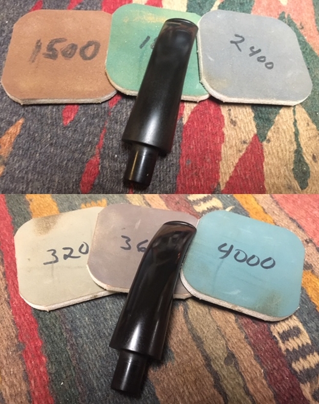I polished the stem with micromesh sanding pads – wet sanding it with 1500-12000 grit pads. I wiped the stem down with a damp cloth after each pad. I further polished it with Before & After Pipe Polish – both Fine and Extra Fine. I wiped it down with a coat of Obsidian Oil and set it aside to dry.