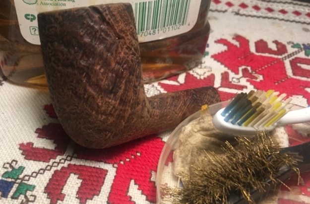 This doesn’t happen often. My wife got into The Pipe Steward activities to picture me cleaning stems of pipes in queue – two Henleys included – this second one and the third staying with me. Yep, this is what my worktable looks like! I clean each airway with pipe cleaners dipped in isopropyl 95% as well as employing shank brushes. I clean the stems before placing them in the soak of Before & After Deoxidizer.