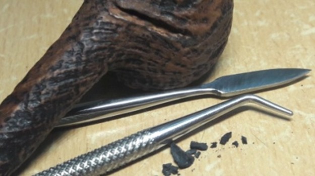 I started with cleaning of the stummel as I was keen to know the condition of the walls of the chamber. With size 1 head followed by head size 2 of a PipNet pipe reamer, I took the cake down to bare briar. Using a folded piece of 180 grit sand paper, I sand out the last traces of cake and expose the walls of the chamber. I wiped the chamber with a cotton pad dipped in isopropyl alcohol to remove the carbon dust left behind by all the reaming and sanding process. Once the chamber walls were cleaned out, I saw very minor and superficial beginnings of heat fissures/ pits all along the chamber walls. I shall address this issue by a simple bowl coat. I used my smaller of the two fabricated knife to gently scrap away at the overflow over the rim top surface while being careful not to damage the sandblast on the rim top. I was pleased to find the inner and outer edge of the rim intact and without any burn or char marks.