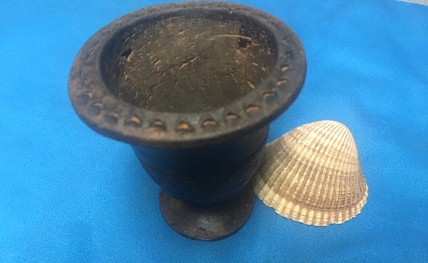 Jeff took photos of the side and heel of the bowl to show the condition of the finish. You can see the beautiful grain – both birdseye and cross grain. The finish was very dirty.