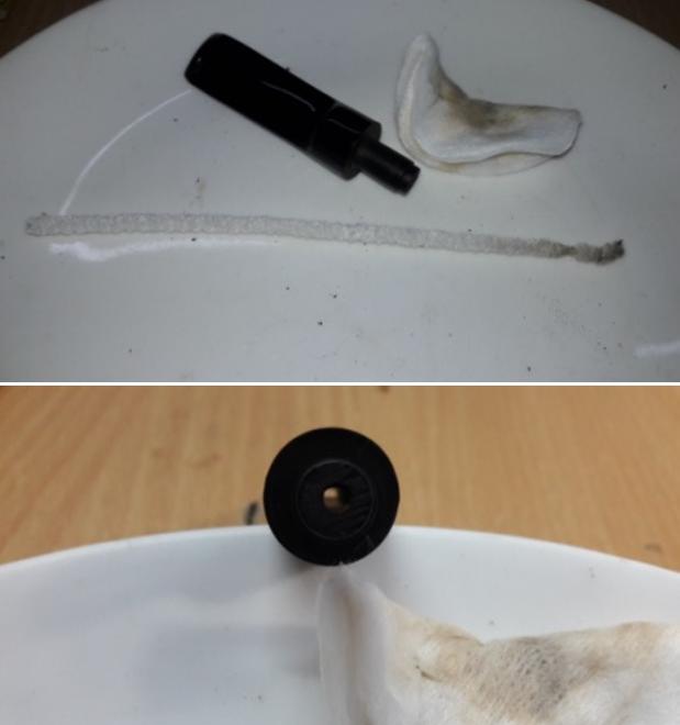 I started the restoration of this beautiful pipe by first reaming the chamber with my fabricated knife. I followed this reaming with sanding the chamber walls with a folded piece of 220 grit sand paper to completely remove any residual cake. This also helps to smooth the walls of the chamber. How I miss the help of Abha, my wife and Pavni, my youngest daughter who specializes in sanding the chamber walls to a smooth and even surface. I wiped the chamber with a cotton swab and alcohol to get rid of all the carbon dust and expose the bare briar of the chamber. As expected, the chamber is sans of any heat fissures/ lines.