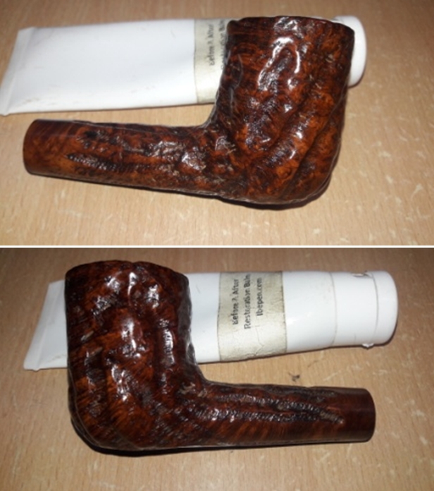 The pipe, as I received in the box, was carefully wrapped in a soft cotton cloth, stummel and stem separate!!! The condition of the stem and the stummel made me wonder if this pipe had been received after restoration/ repair work; it appears in such great condition. I thoroughly checked the entire pipe for any signs of repairs or damages. Fortunately there were none!! Only the stem appears brand new. Could it be a new replacement stem from an authorized store? No way to determine this as there are neither any receipts or documents nor any person in my family who could have confirmed this aspect.