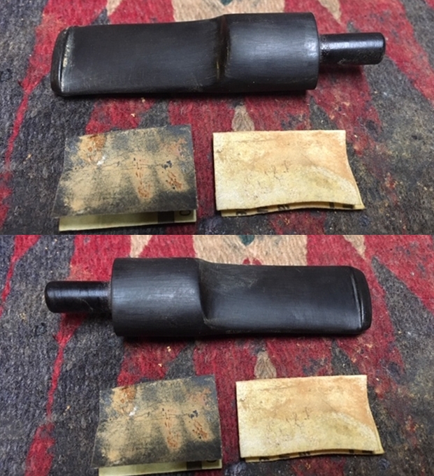 I set the cleaned bowl aside and turned my attention to the stem. I sanded out the tooth chatter with 220 grit sandpaper and started to polish it with a folded piece of 400 wet dry sandpaper. Once it was finished it began to shine.