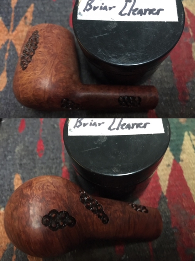 I worked some Before & After Restoration Balm into finish of the briar with my fingertips and into the rustication patterns with a horsehair shoe brush to clean, enliven and protect it. I let the balm sit for a little while and then buffed with a cotton cloth to raise the shine. The Restoration Balm really makes the grain stands out beautifully.