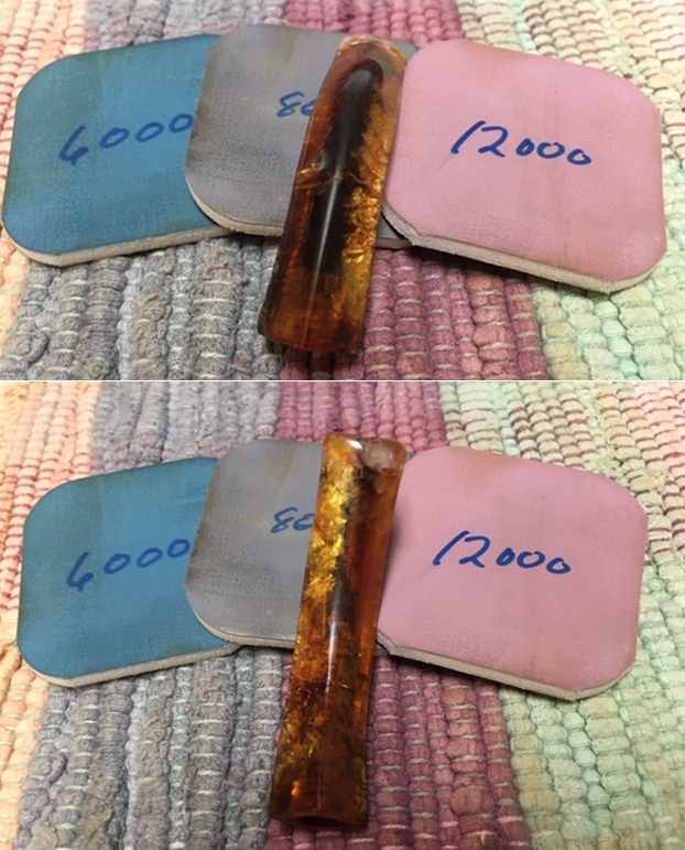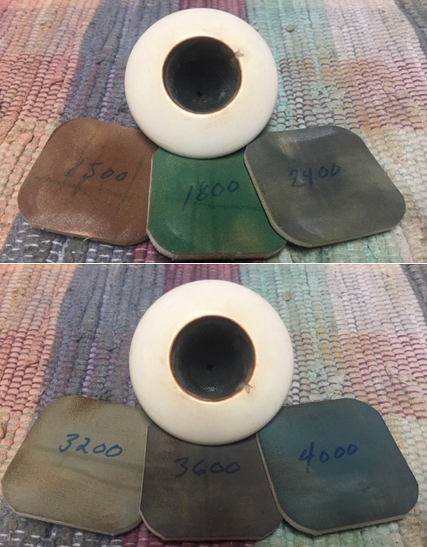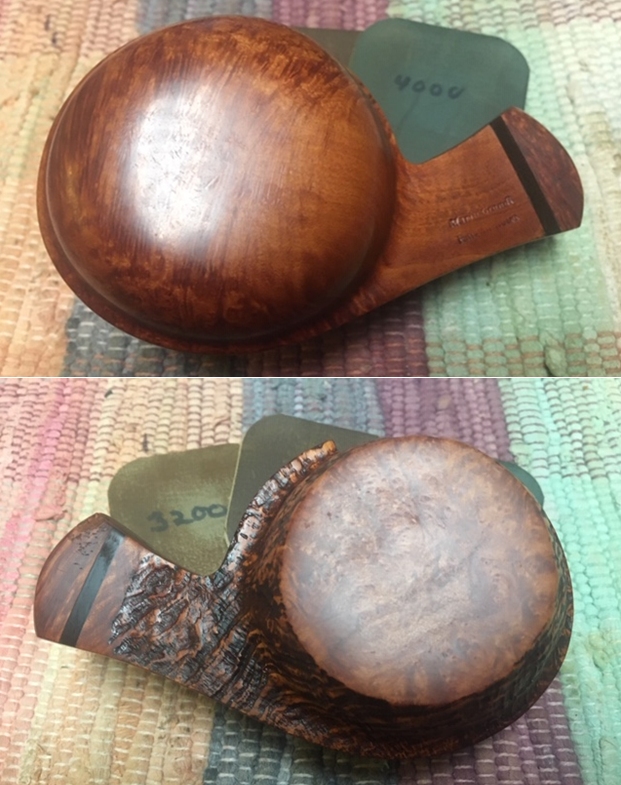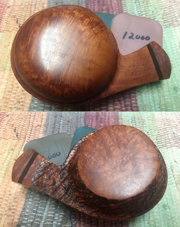 I polished the bowl and the high spots on the plateau rim with micromesh sanding pads. I wet sanded it with 1500-12000 grit pads and wiped it down between pads with a soft cotton cloth. You can see the progress in the shine as you go through the photos.
