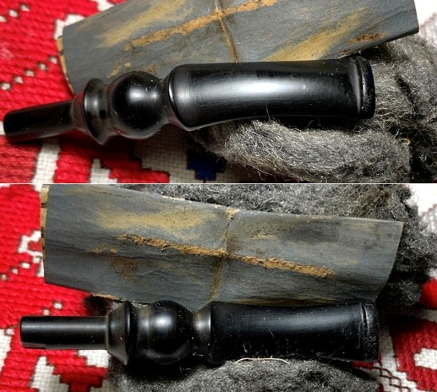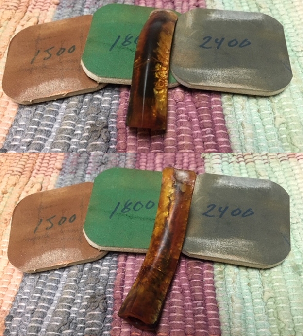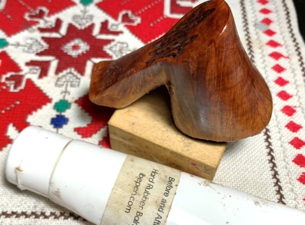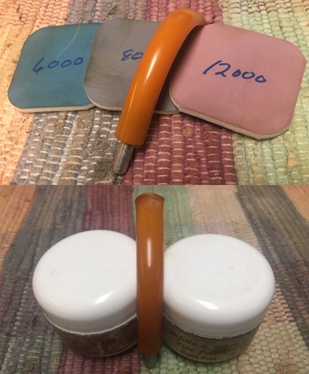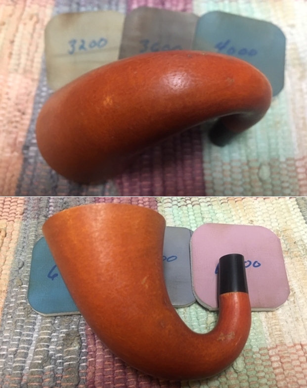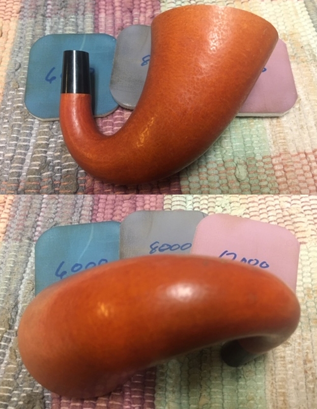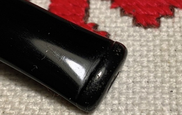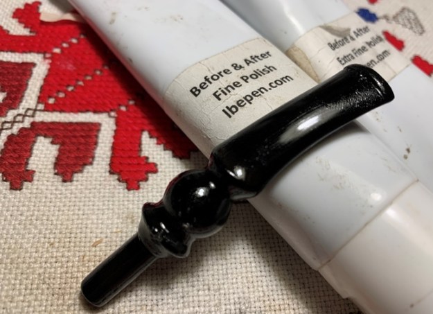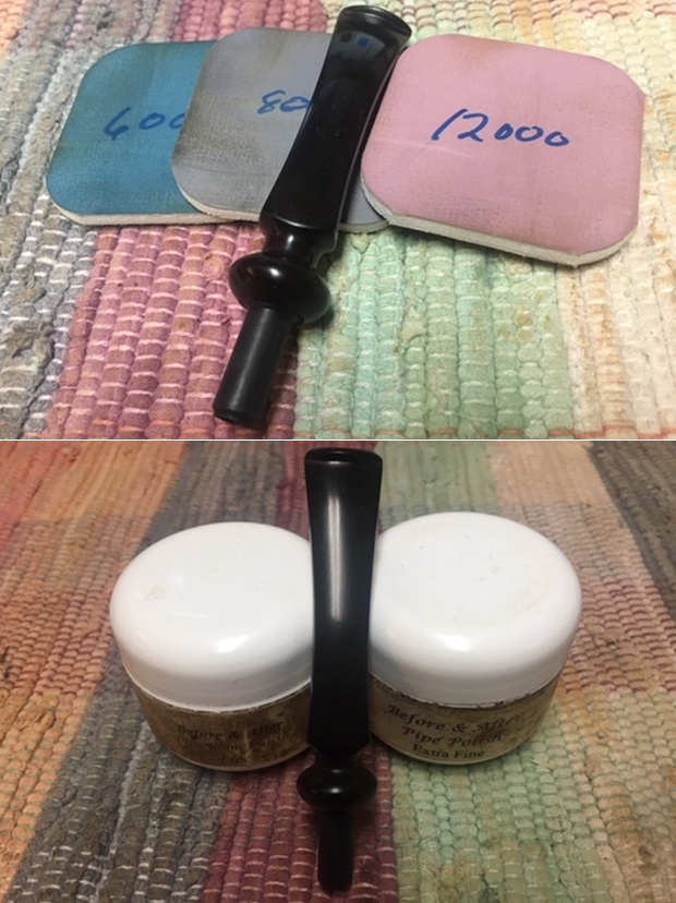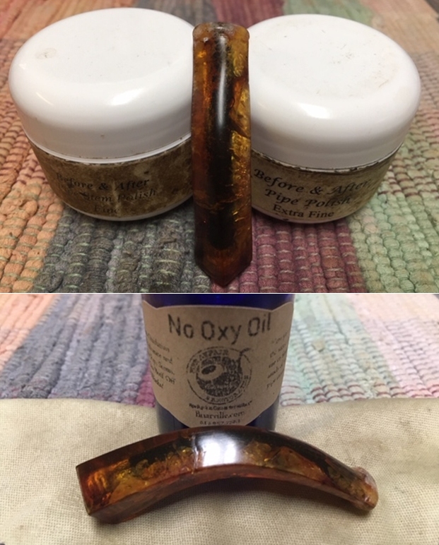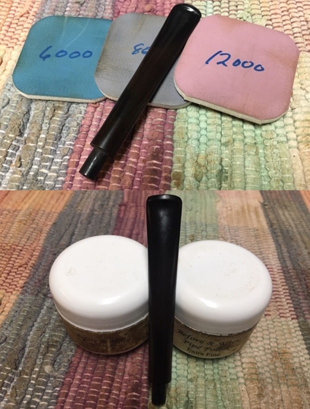 I polished the stem with micromesh sanding pads – wet sanding it with 1500-12000 grit pads. I polished it further with Before & After Pipe Stem Polish – both fine and extra fine. I finished by wiping it down with Briarville’s No Oxy Oil and buffing it to a shine.