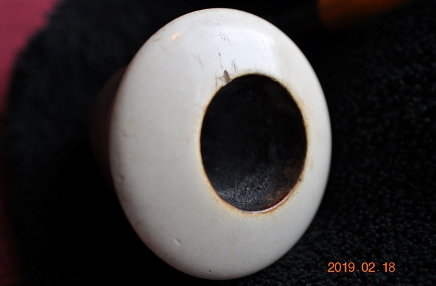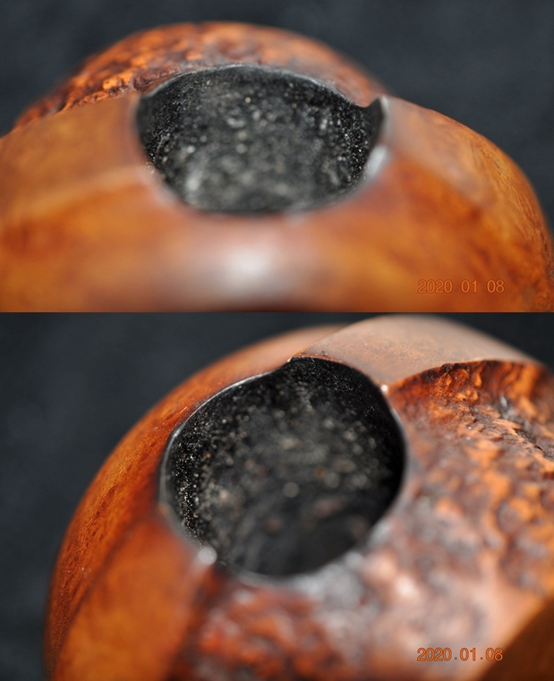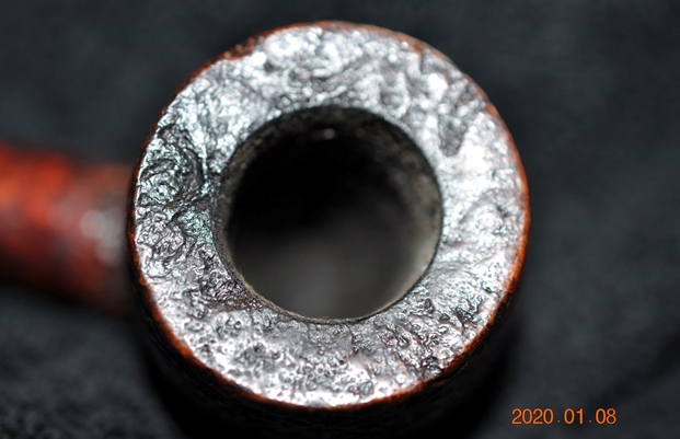 Jeff took photos of the bowl and rim top to show the cake in the bowl and the lava build up on the plateau rim top and dust and grime in the shank end as well. It was thick and hard but hopefully it had protected the rim and edges from damage. The lava coat looks horrible but it points to a well-used, favourite smoking pipe. George must have enjoyed this old timer a lot judging from the condition of the pipe.