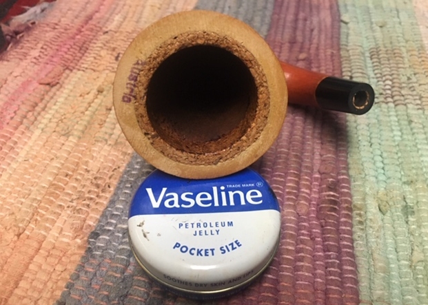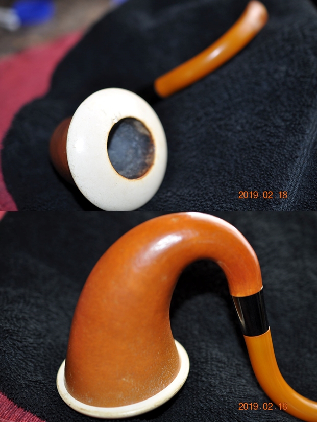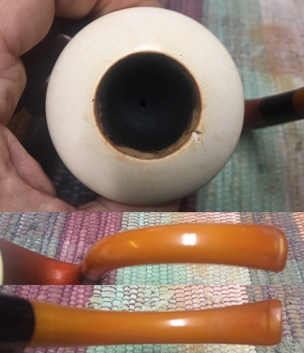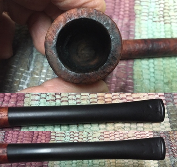I put a pipe cleaner in the stem to keep the airway from collapsing or kinking. I heated the stem slowly and carefully with a candle until the vulcanite was pliable and then straightened out the bend to match the flow of the rim top of the pipe.