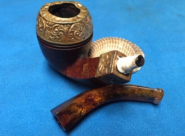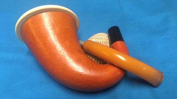At least two of his pipes, he inherited from his son-in-law, Joe Marino, a retired medical laboratory researcher (my sister Lesley’s late husband)… the long stemmed Jarl (made in Denmark), and the large, white-bowled, Sherlock Holmes style pipe.
