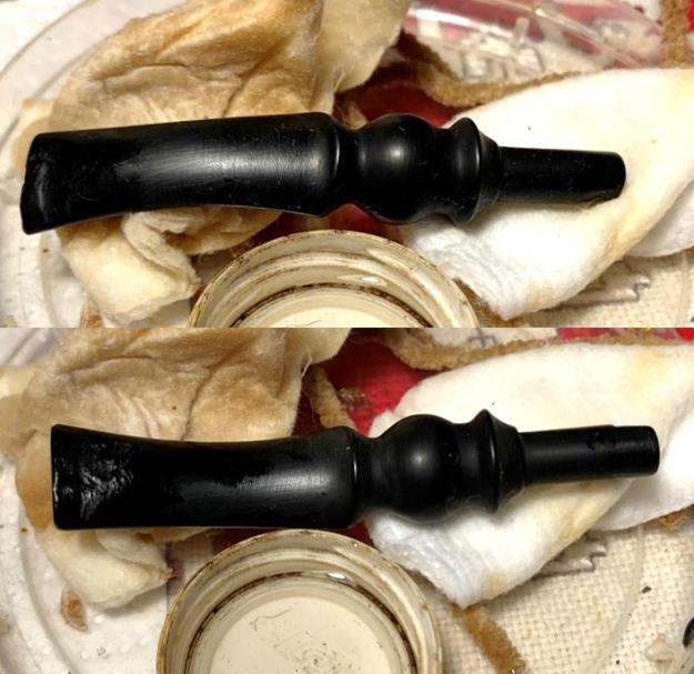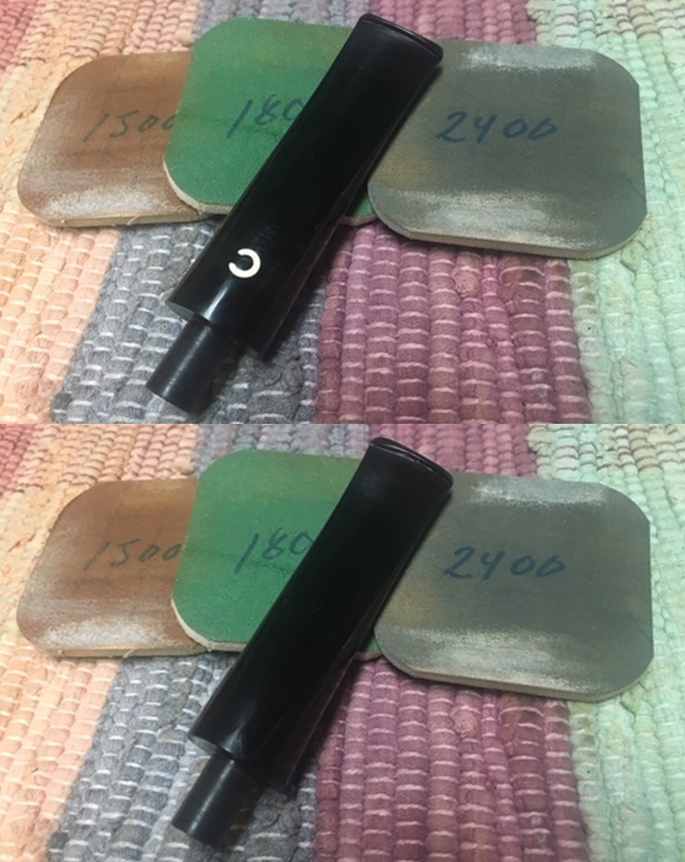 I rubbed the stem down with Denicare Mouthpiece Polish and a cotton pad to remove remnants of oxidation and to further blend in the sanding. The stem was showing some promise at this point in the process.