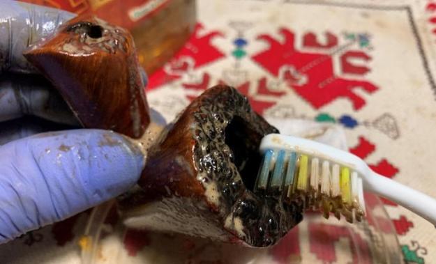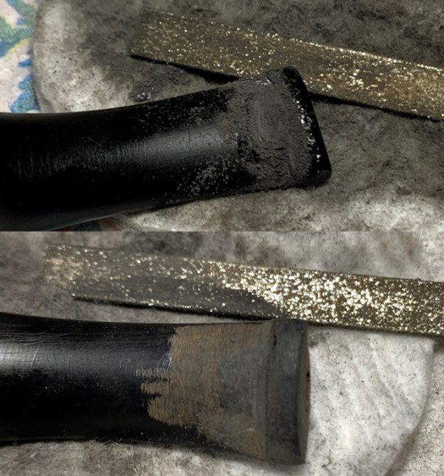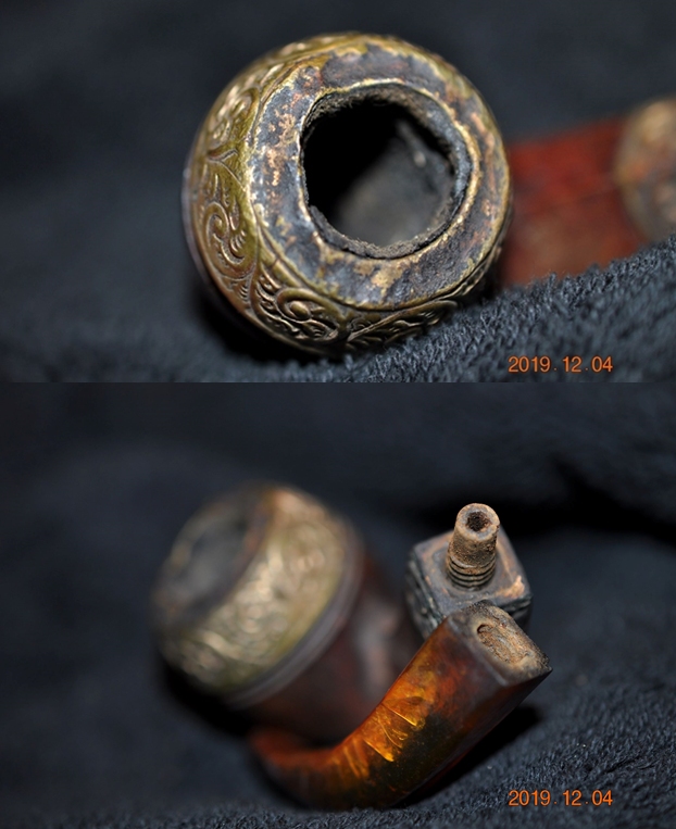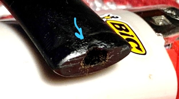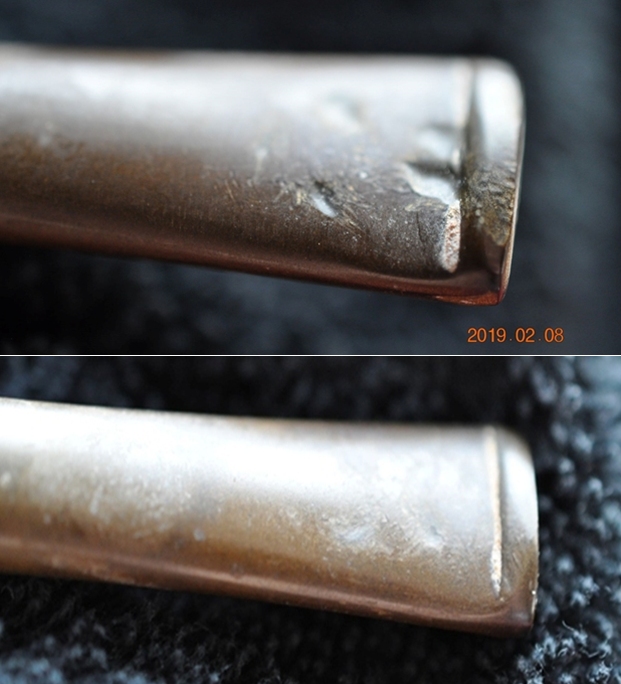 Jeff took photos of the top and underside of the stem showing the scratching, oxidation and tooth marks on the stem surface. The tooth marks are quite deep on both sides of the stem.