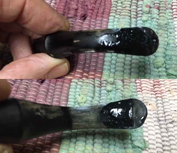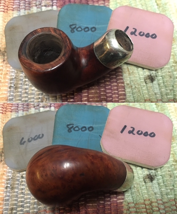 I rubbed the stem down with Denicare Mouthpiece Polish. I have found it is a great pre-polish for my use as it shows me areas that I need to work on with the micromesh sanding pads.