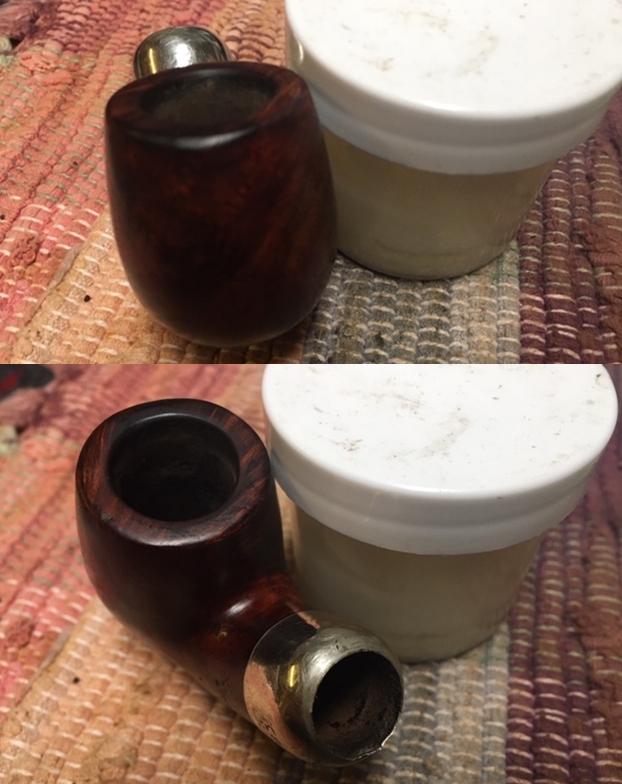 The stem actually was surprisingly good for this estate. There were not any deep tooth marks in the vulcanite. We only had to deal with the oxidation and calcification. There no deep pits in the surface of the rubber. The third photo shows it in comparison to the ferrule so you can see how far from black it gone.