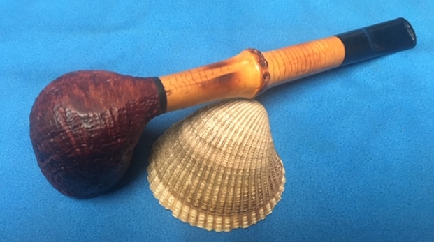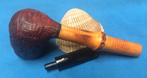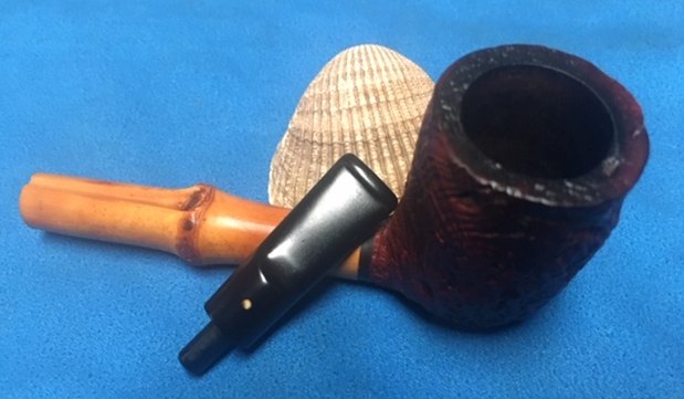 Once I finished I put the stem back on the shank and carefully buffed the pipe with Blue Diamond polish using a lightly loaded pad and a soft touch. I wanted the shine but not the grit filling in the crevices of the sandblast bowl. I used even a gentler touch on the bamboo. I gave the stem a vigorous polish being careful around the white spot. I gave the bowl and bamboo several coats of Conservator’s Wax and the stem several coats of carnauba. I buffed the pipe with a clean buffing pad and hand buffed it with a microfiber cloth. The finished pipe is shown in the photos below. It is a great piece of pipe history and looks better than when I began the process. The dimensions of the pipe are Length: 5 ¾ inches, Height: 1 7/8 inches, Outer Bowl Diameter: 1 ¼ inches, Chamber Diameter: ¾ of an inch. The pipe will soon be heading back to Alex so he can continue to enjoy it. I have told him that if he ever wants to part with it I get the right of first refusal. Thanks for walking with me through the restoration.