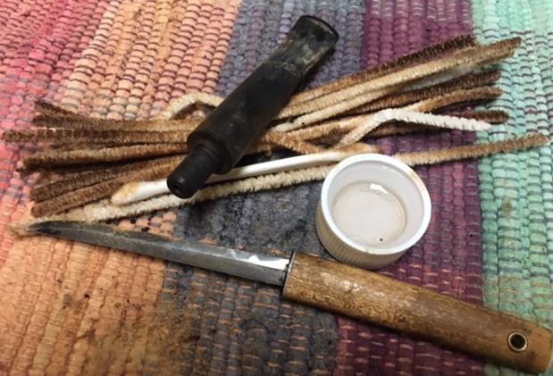 I cleaned the mortise and the airway in the shank and stem with pipe cleaners, cotton swabs and alcohol. I opened the airway into the bowl with a sharp straightened paper clip and used the drill bit on a KleenReem tool to clean out the “crud” (hardened tars and oils). I scraped the inside of the mortise with a pen knife. I opened the slot in the button with a dental pick and pushed pipe cleaners through the debris in the stem. I scraped away the majority of the calcification with the pen knife while I was cleaning the stem. Once I had finished – many pipe cleaners and cotton swabs later the airway was unobstructed to the bowl and the pipe had begun to smell clean.