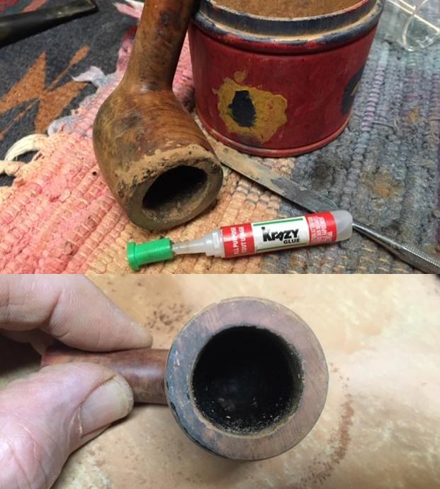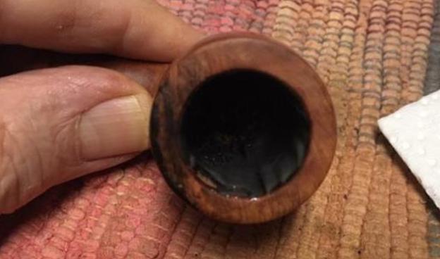 I set the bowl aside and turned my attention to the stem. I “painted” the surface of the stem with the flame of a Bic light to raise the tooth marks. It raised them all some but the two on the underside were too deep to come up very much. Overall the stem was looking better.