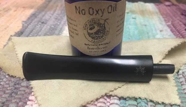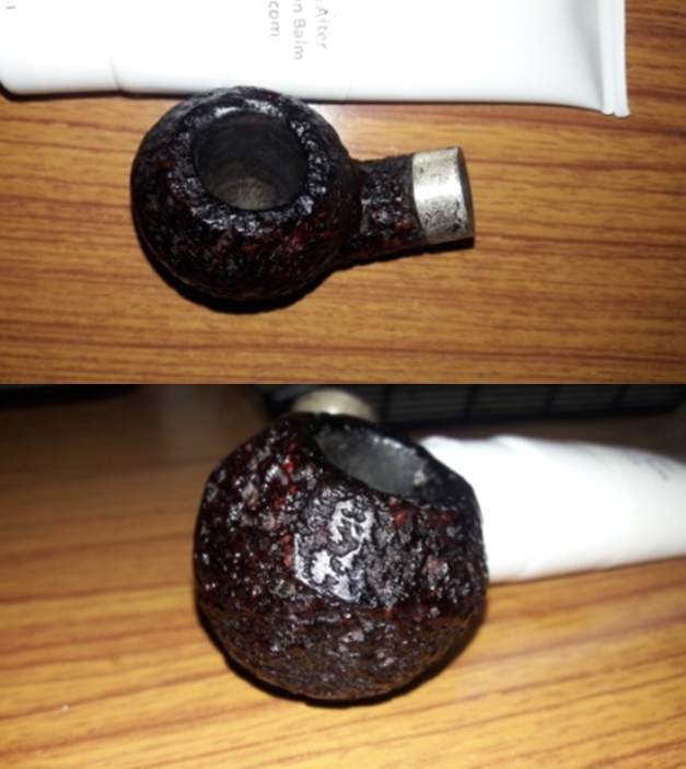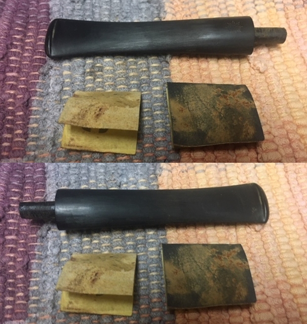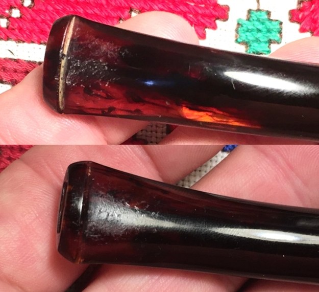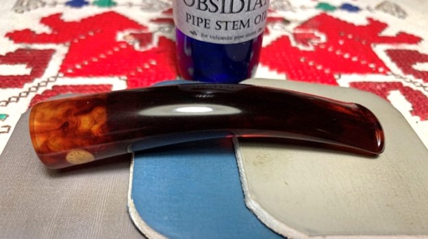I polished the stem with Denicare Mouthpiece Polish to remove the light scratching and the light oxidation on the stem surface. The product is a red paste that is gritty and when rubbed with a cotton pad it removes many of the scratches and remaining oxidation.