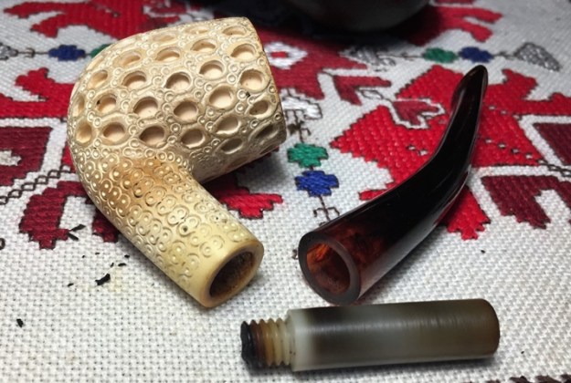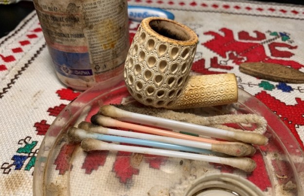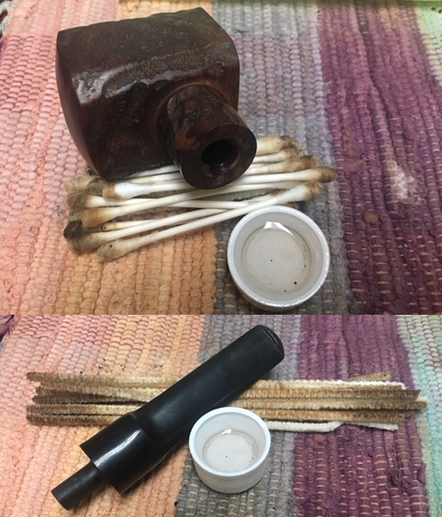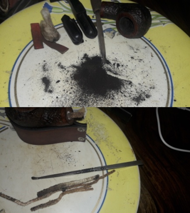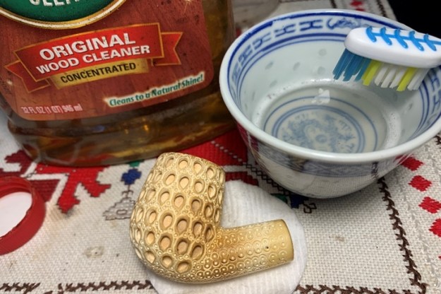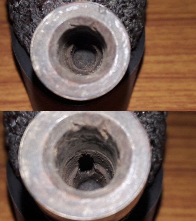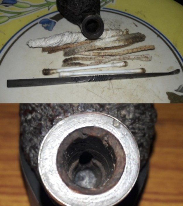 I cleaned the interior of the shank/mortise and the airway in the shank and the stem with pipe cleaners, cotton swabs and alcohol. I removed the stinger from the tenon so that I could clean the airway in the stem. The airway in both and the mortise were dirty and after I had scoured them the pipe was clean and smelled better.