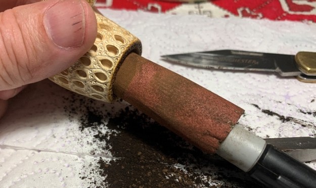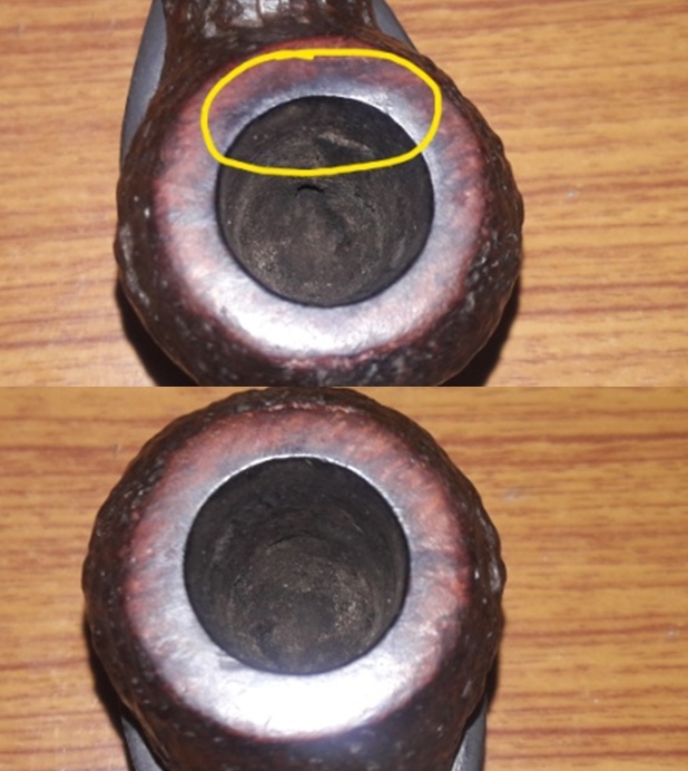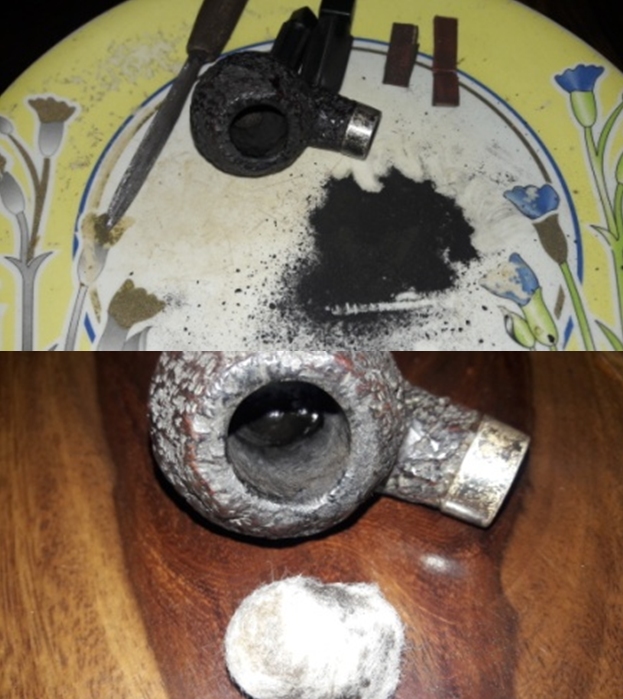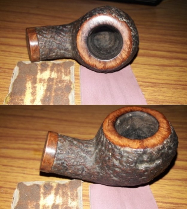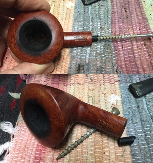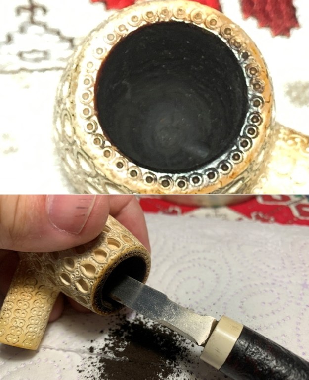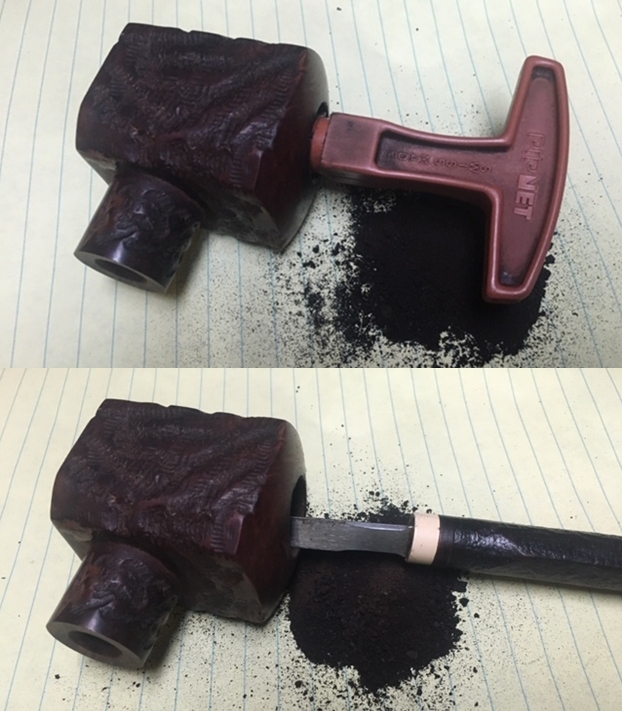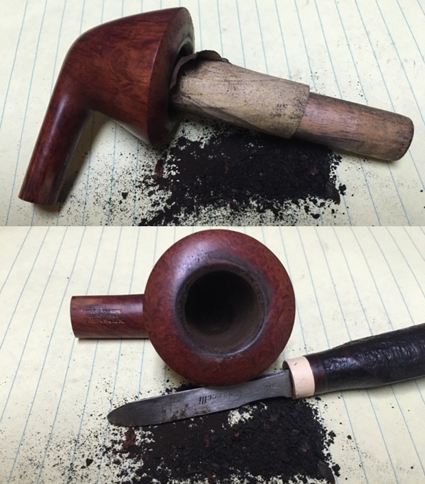 I took the bowl to the work table and reamed it. I used a Savinelli Fitsall Pipe Knife to clean up the light cake in the bowl.