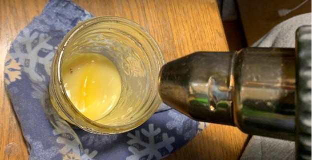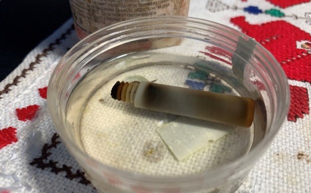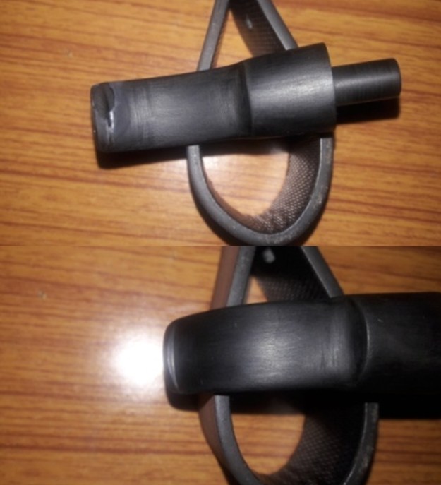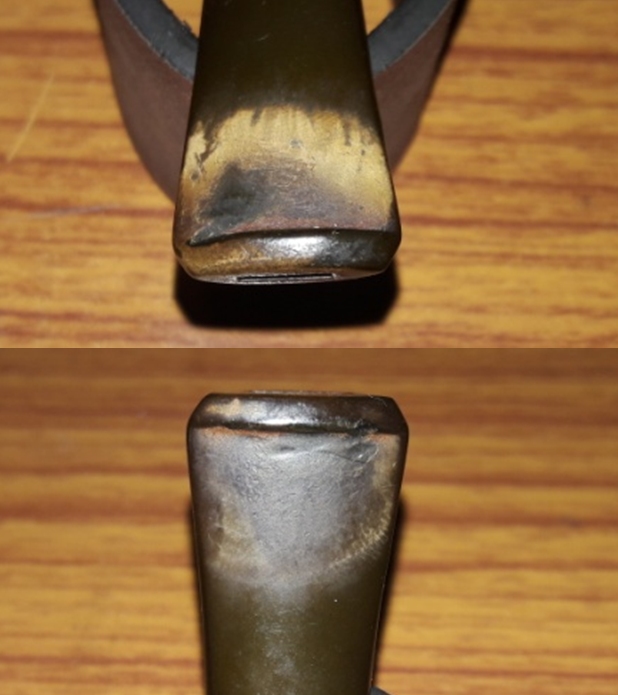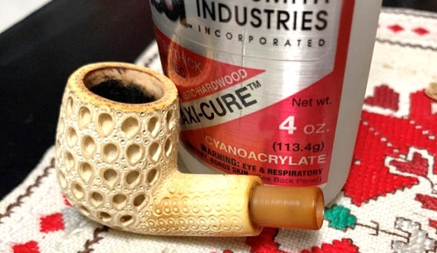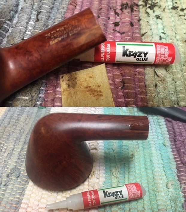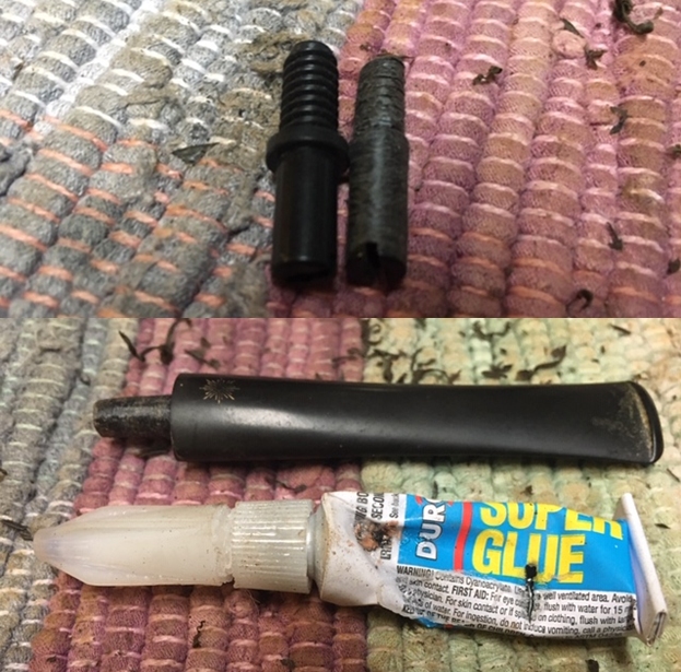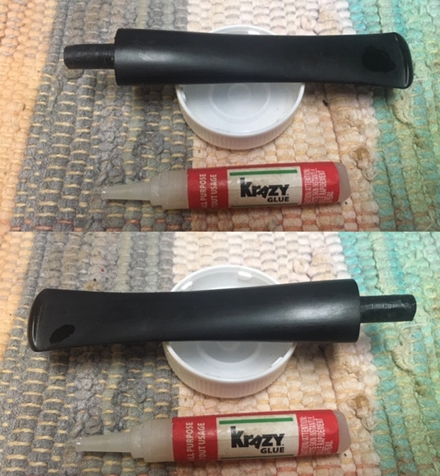 The tooth marks on the top were light and would sand out later. There was one deep tooth mark on the underside of the stem. I cleaned it out with alcohol and a cotton swab. I filled it in with black super glue and let it cure.
