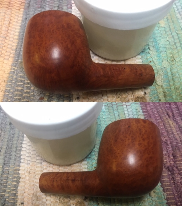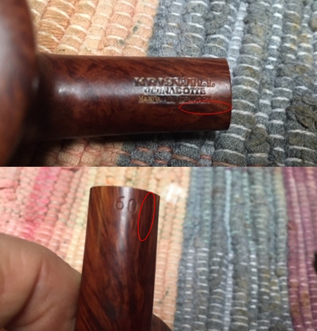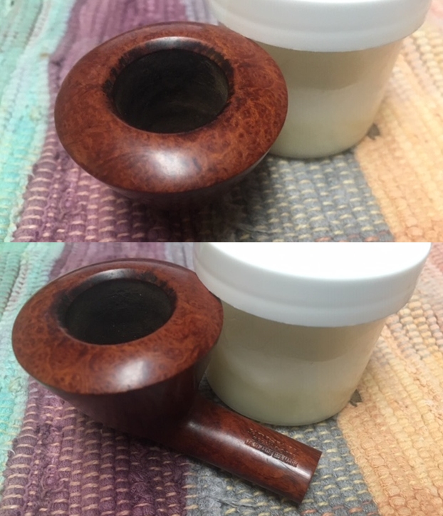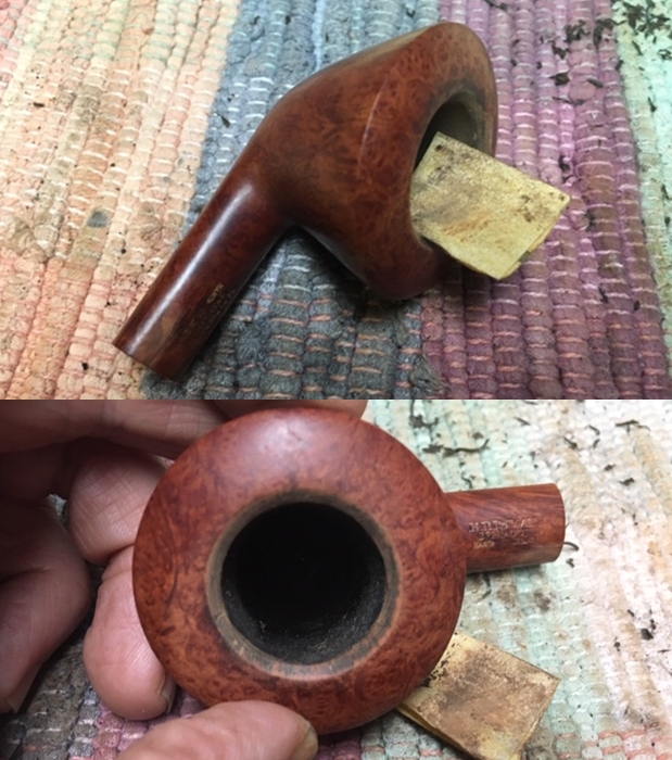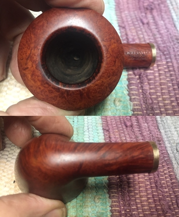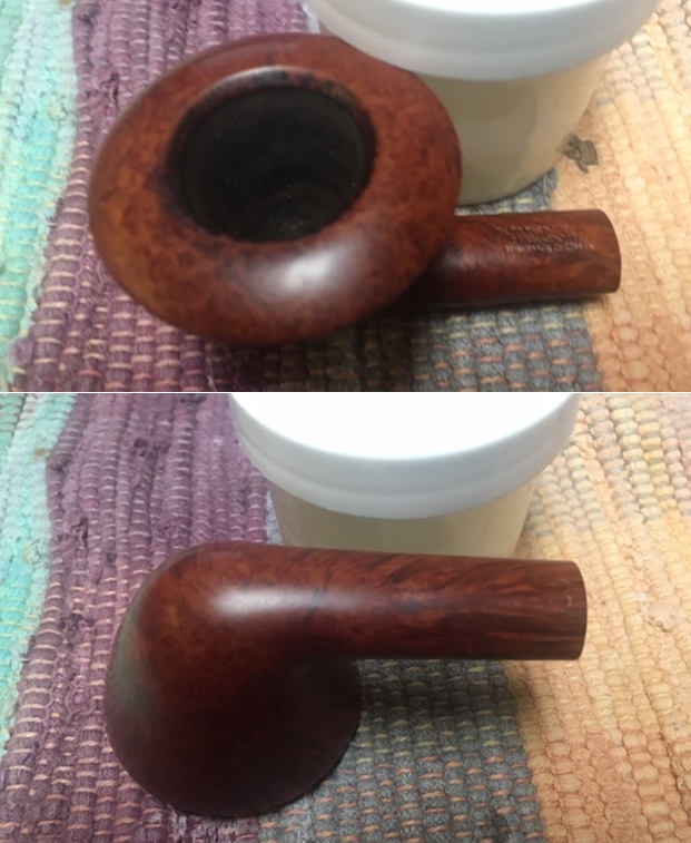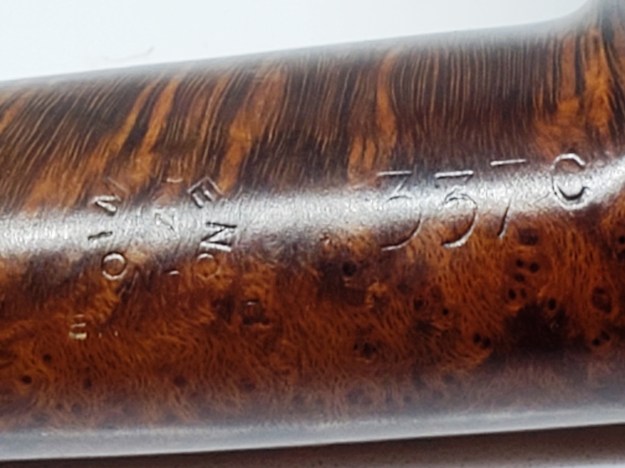 I took a photo of the stamping on the left side of the shank. It is stamped Anscot in script with the leg of the A extended in a swirl under the whole word. On the right side of the shank it is stamped Mediterranean Aged Briar.