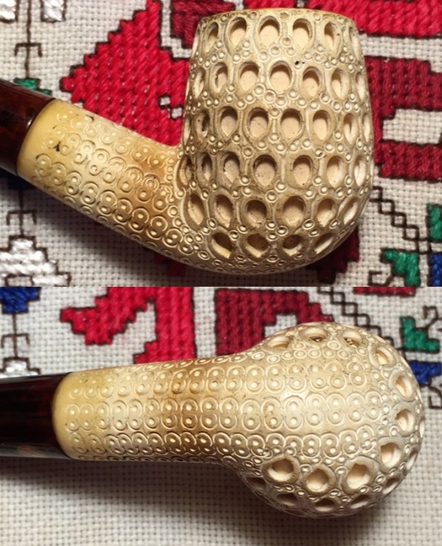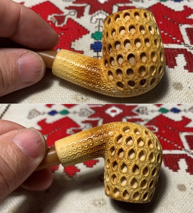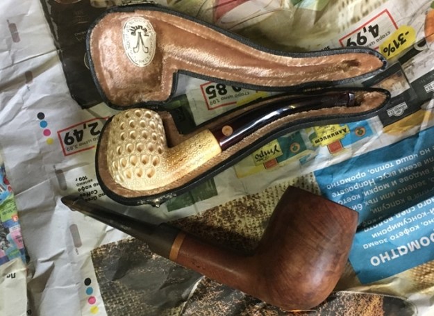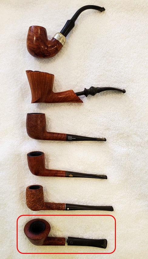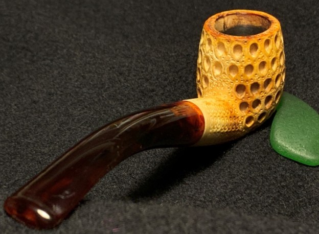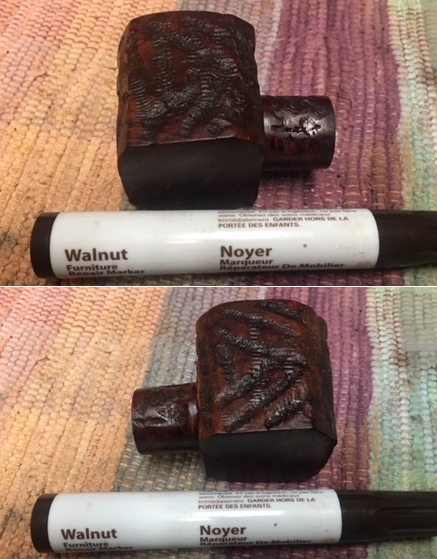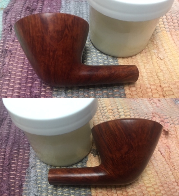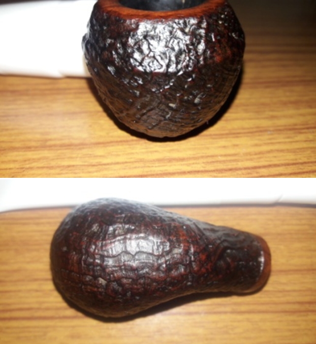 I took a photo of the stamping on the left side of the shank. It is stamped Anscot in script with the leg of the A extended in a swirl under the whole word. On the right side of the shank it is stamped Mediterranean Aged Briar.