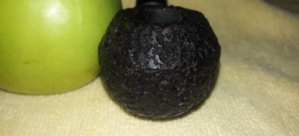 I just finished working on the Marxman Jumbo Bench Made Poker for the fellow in Quebec. I wrote a blog about it (https://rebornpipes.com/2020/02/28/restoring-an-obstinate-marxman-jumbo-war-club/). When he sent the Marxman he included another pipe that he wanted to donate for the support of the SA Foundation. I am always glad to work on those and pass them on to others who not only want a good pipe but want to donate to a worthy cause – the restoration and recovery of women and children who have escaped sexual exploitation and trafficking. It’s a large pipe stamped on the left side of the shank in script and read Anscot. On the right side it is stamped Mediterranean Aged Briar. The stamping is clear and readable. The stem did not seat in the shank completely and was very tight. The finish was shiny and dirty like it had been coated with varnish or shellac. There was one large fill on the front of the right side mid-bowl. The bowl had been cleaned and there was a small bit of cake in the base of the chamber near the entrance of the airway. The rim top had some burn damage on the inner edge of the bowl toward the front of the bowl. The inner edge of the chamber was out of round and damaged. The stem was high quality vulcanite and had tooth chatter and marks on both sides near the button. The stem would not seat against shank. The photos show what I saw as I examined the pipe.