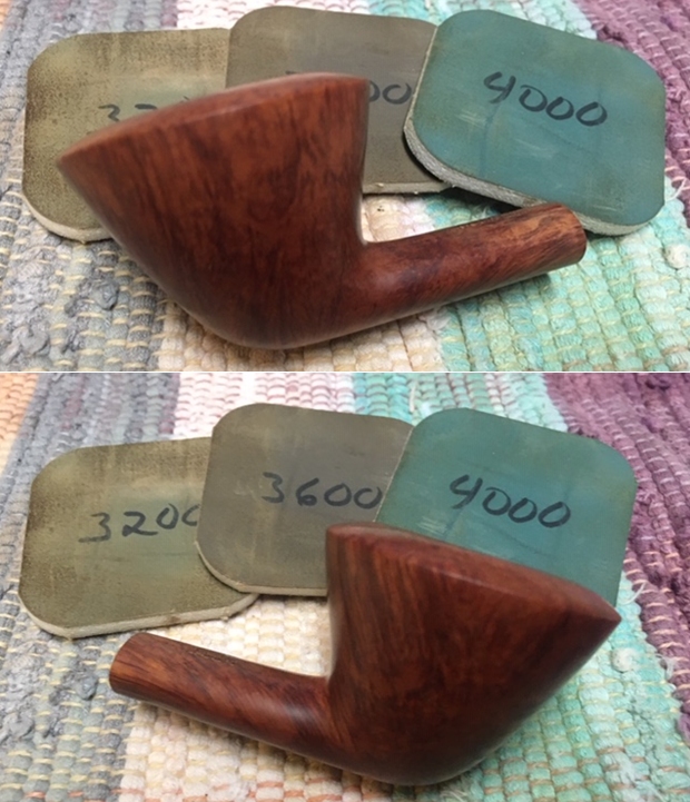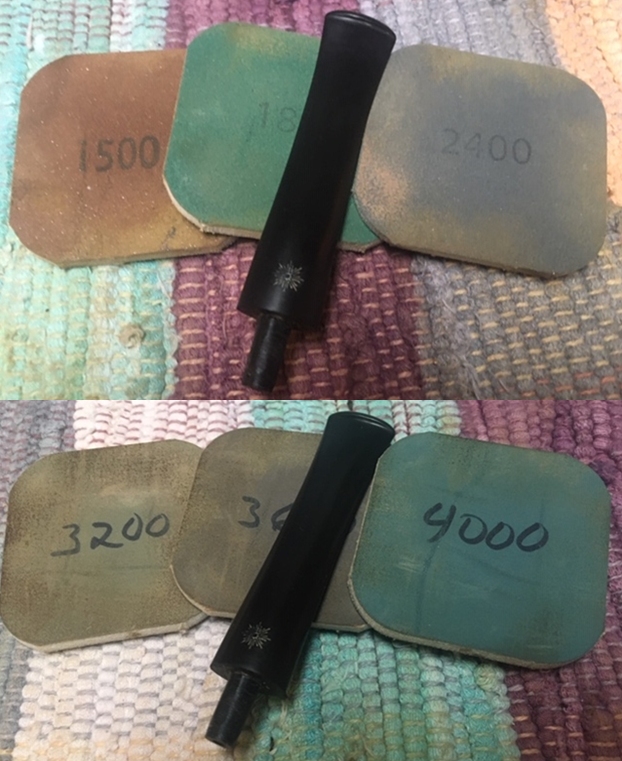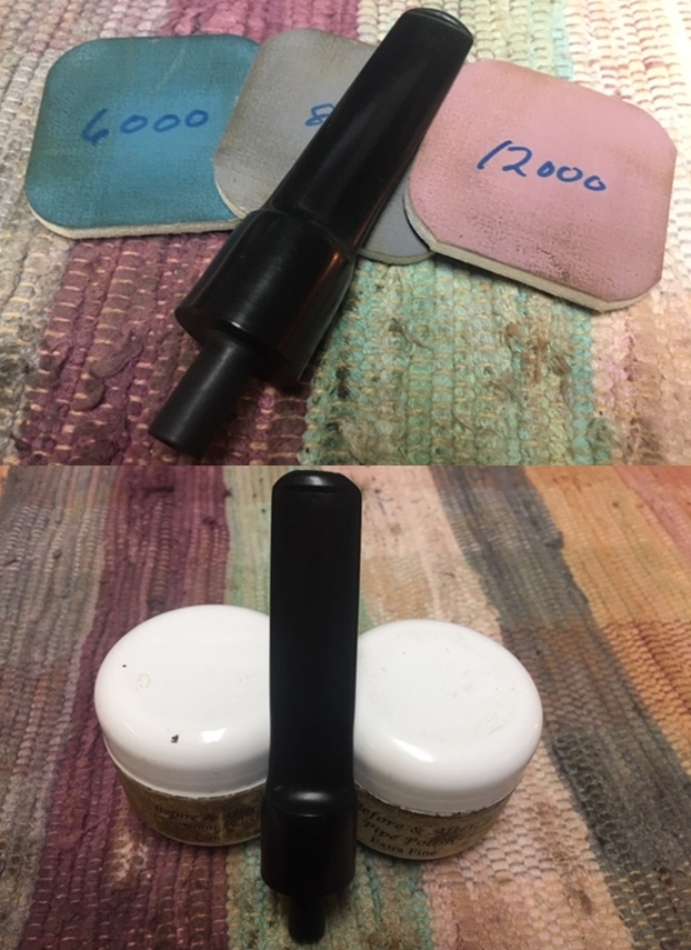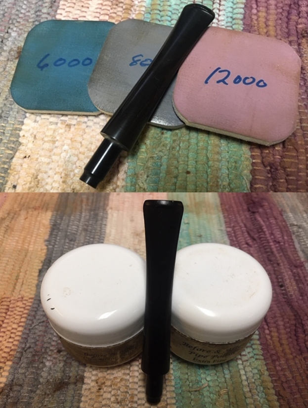 I polished the stem with micromesh sanding pads – polishing it with 1500-12000 grit micromesh sanding pads. I wiped it down with cloth between each sanding pad. I polished it with Before & After Pipe Stem Polish – both Fine and Extra Fine. I gave it a rub down with Briarville’s No Oxy Oil to protect the stem from oxidizing. It was looking very good at this point.