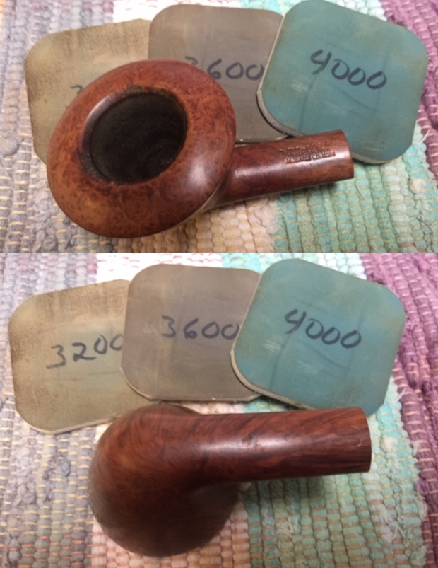 With that finished I moved on the polishing the bowl and the rim top with micromesh sanding pads. I polished them with 1500-12000 grit sanding pads and wiped the bowl down with damp cloth to remove the sanding dust.