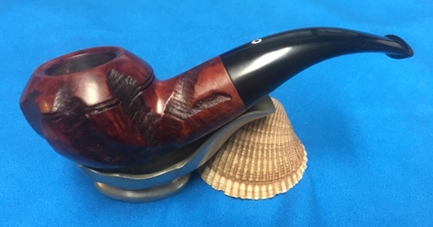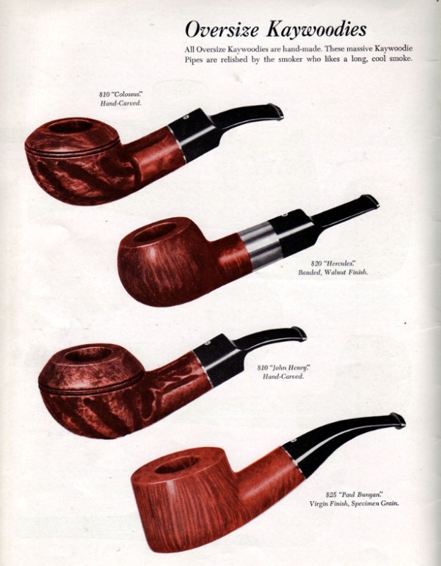 Alex has been an ongoing source of restoration projects for me for a few years now. I actually have a box of pipes that Alex drops by periodically and adds new pipes for work. It has been fun to see him pick up the restoration hobby himself lately. He leaves the harder ones to me to work on – whether harder in terms of issues or harder in terms of cleaning. I have quite a few of his to work on so I spread them among the others that I am working on. This next pipe is an interesting older Kaywoodie Hand Made Rhodesian with an almost Custom Bilt rustication pattern around the bowl. The difference to me is that this beauty has some stunning grain in the smooth portions and the rustication is less random and more methodically chosen to highlight some of the grain features. The pipe is stamped Hand Made over Kaywoodie on a smooth panel on the left side of the shank. On the right side there is a stamp that reads Imported Briar. It has been in the box for quite a while now so this afternoon I took it to the work table. The finish is a combination of reddish browns and dark brown in the rusticated portions. The contrast is quite beautiful though a little dull as it has not been used or cared for in a long time. The rim top had an inward bevel that had some darkening and burn damage to the inner edge on the front right and back of the bowl. The pipe had been reamed before Alex received it and really was quite clean. The push stem was lightly oxidized and had Kaywoodie white logo with a black cloverleaf making it an older pipe. There were hash marks and tooth marks on both sides of the stem ahead of the button. Overall the pipe was in good condition. I took some photos of the pipe as I received it. I took a close up photo of the rim top. It shows some darkening on the right side of the inward beveled top. The outer edges look good. The photos of the stem show hash marks and tooth marks on both sides ahead of the button. They are deep scratches/gouges in the vulcanite that have filled in with calcification. The stem is also quite oxidized.I took photos of the stamping on both sides of the shank. You can see that it reads as noted above.I have worked on a few of the Kaywoodie Hand Made over the years and have found in the past that they were listed as Oversize Kaywoodie pipes. I turned to Pipephil’s site to see what information I could gather there on the oversize pipes (http://www.pipephil.eu/logos/en/logo-kaywoodie-2.html#oversizekaywoodie). I have included a screen capture of the information on that site for quick reference. The basic information I gather there was that the pipe had in all probability been noted in the 1947 Kaywoodie Catalogue. It also made it clear that all the Oversize models are stamped Hand Made.I then turned to Pipedia and under the general information did not find much helpful that I did not already know. It is a great read regarding the history of the brand and its development from the older KBB and KB&B brand pipes. However it did have follow up information in the end notes on the page and that took me to a series of Catalogues (1937, 1947 and 1955). The Hand Made line shows up first in the 1947 Catalogue that was included. I read through it and that is where I found some additional information to help me in my quest. Here is a link to the 1947 Catalogue for your reading pleasure (https://pipedia.org/images/6/61/Kaywoodie_1947.pdf). I have included a screen capture of the section in the catalogue about the Oversize Kaywoodies. I have included that below. I have also included two of the Catalogue pages that show the oversize Hand Made pipes. The one I am working on while similar to the Hand Carved Colossus and the Hand Carved John Henry is significantly different. This one is carved with the patterns but has a tapered push stem rather than the typical screw mounted Kaywoodie. This is a beautifully styled and positioned Rhodesian shape has a tapered vulcanite push stem that fits proportionally well. The carved areas or “worm trails” around the bowl are separated by smooth well grained portions of briar that highlight the grain. The combination of brown stains on the finish makes it quite stunning. Now it was time to work on Alex’s pipe. I started the work by addressing the issues with the rim top first. I ran some pipe cleaners through the bowl and stem and it was spotless so I decided to deal with rim top damage. I used a folded piece of 220 grit sandpaper to clean up the beveled rim top to remove the darkening. I sanded the rim top and edges of the bowl with the sandpaper to get rid of the damage. Once I was finished the rim and edges were smooth.I polished the bowl and rim top with micromesh sanding pads – wet sanding with 1500-12000 grit pads and wiped the bowl down after each pad with a damp cloth. The polishing gave the bowl a rich shine. After polishing the rim it was slightly lighter than the other smooth portions of the bowl. I used a Maple Stain Pen to match the colour of the rest of the bowl and blend the new finished rim into the surrounding pipe.I rubbed it down with Before and After Restoration Balm. It is a product developed by Mark Hoover to clean, enliven and protect briar. I worked it into the briar with my fingertips and a horsehair shoe brush. I let it sit for about 10 minutes and buffed it off with a cotton cloth. You can see the results in the photos below. I set the bowl aside and turned to address the light tooth marks, chatter and gouges on the stem surface. I sanded both the top and underside of the stem with 220 grit sandpaper to remove the damages to the vulcanite. Fortunately they were not too deep so they came out fairly quickly. I also did a quick sanding to remove the oxidation on the stem.I polished the stem with micromesh sanding pads – wet sanding it with 1500-12000 grit pads and wiping it down after each pad with a damp cotton pad to remove the dust. I polished it with Before and After Pipe Polish – both fine and extra fine