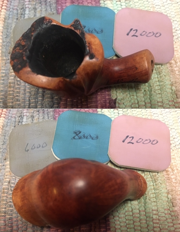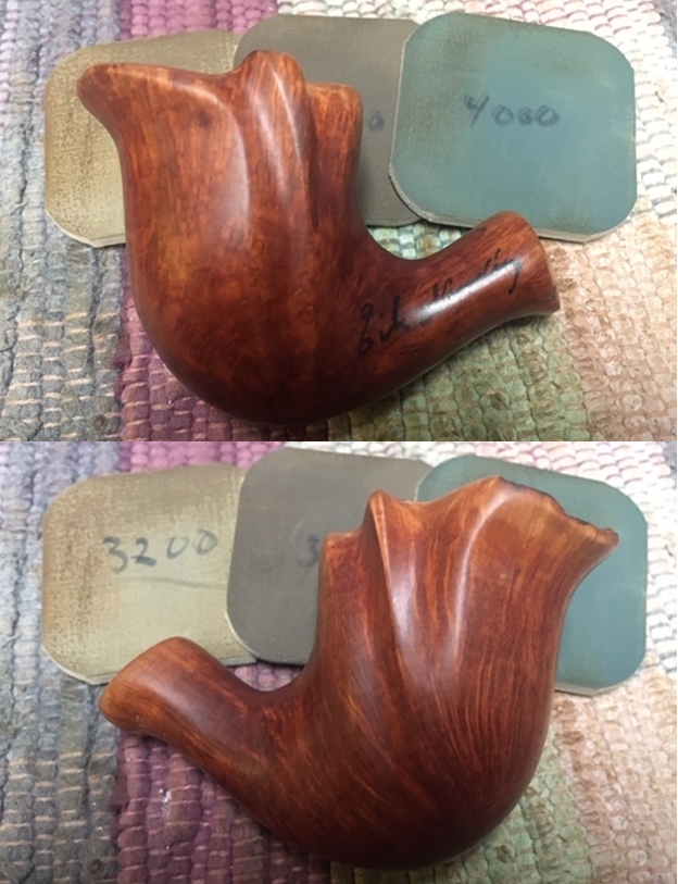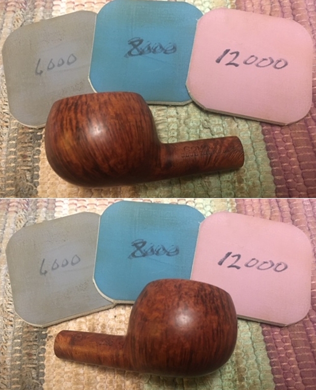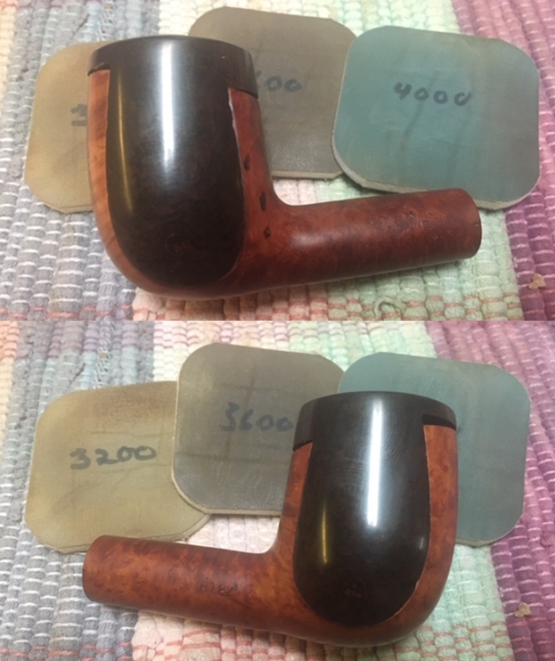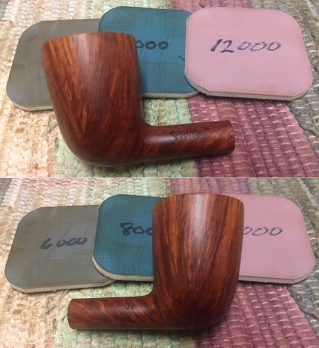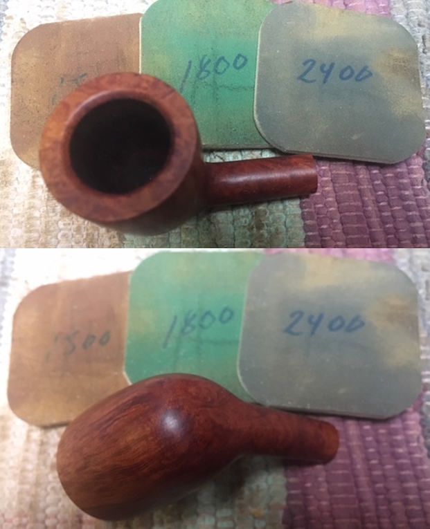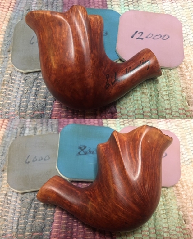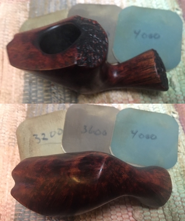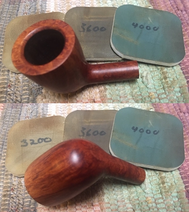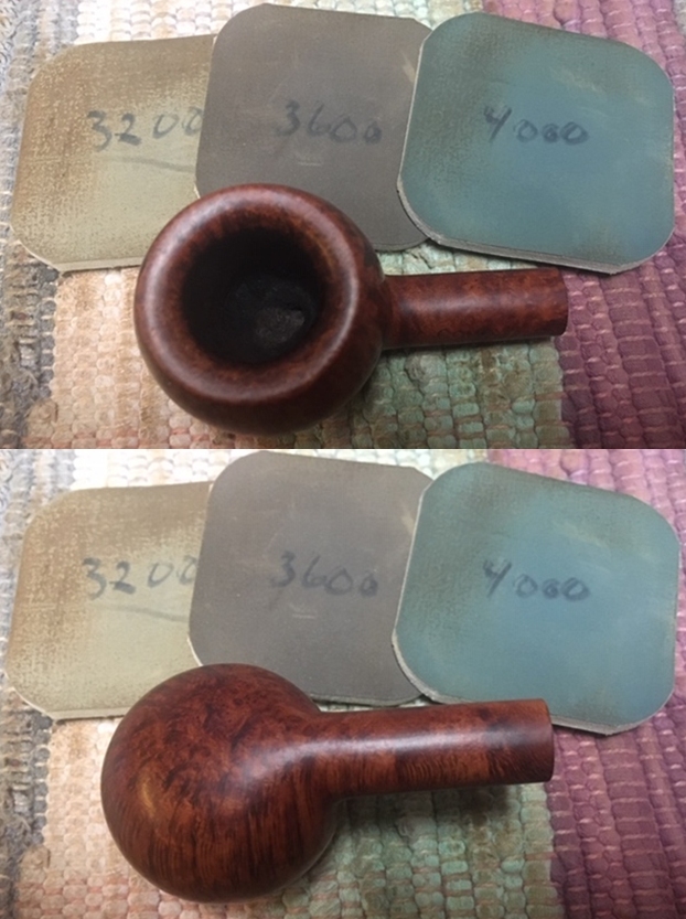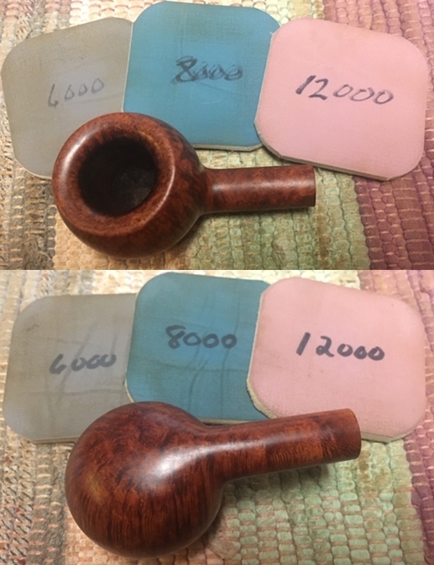 Since the pipe was also in such great condition at this point I started my polishing regimen. I used nine worn micromesh sanding pads and dry sanded the bowl with 1500-12000 grit pads. I wiped the bowl down with a damp cloth after each pad. The bowl really shines by the final three pads.