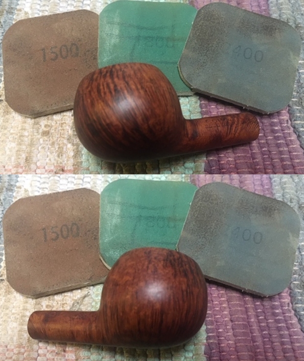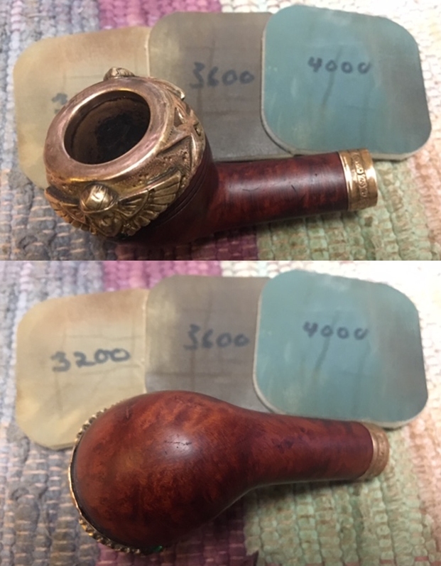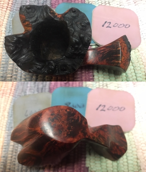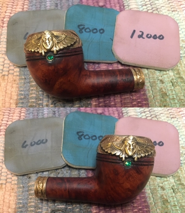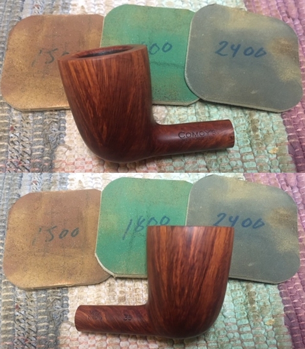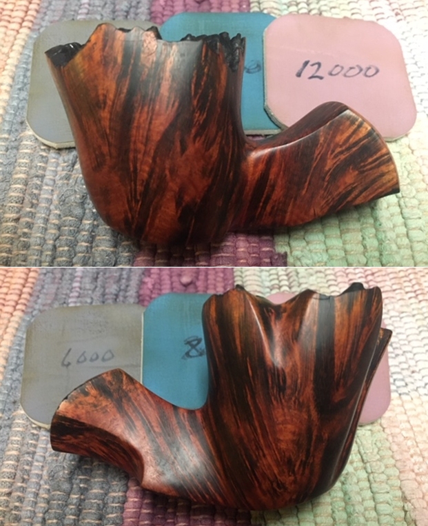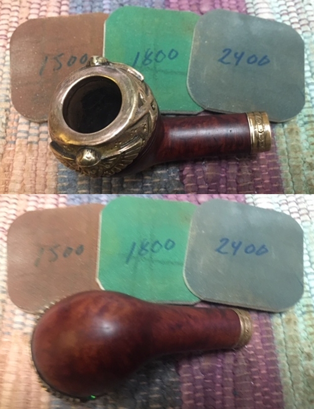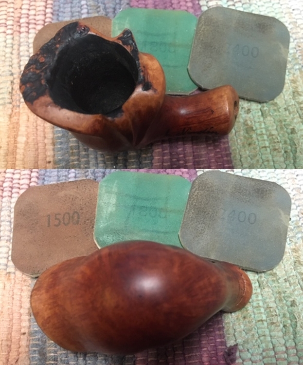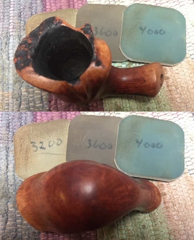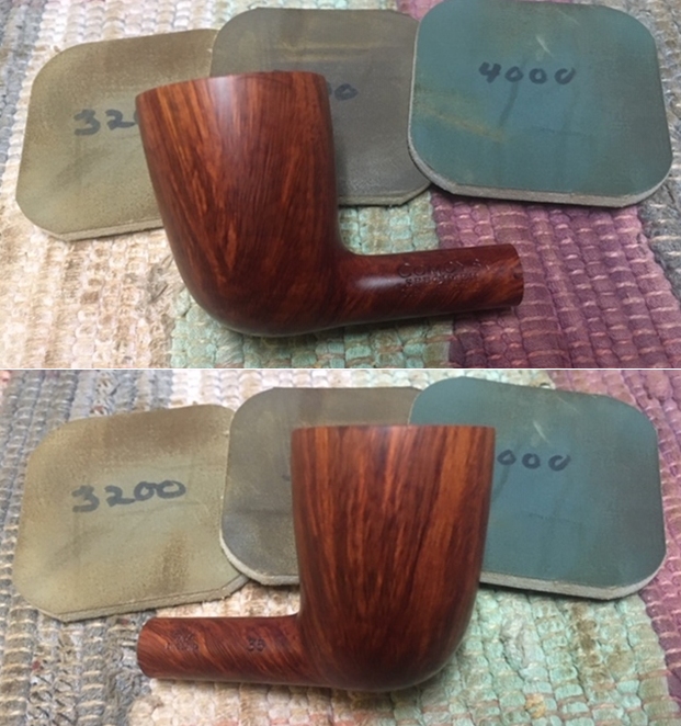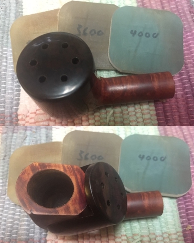 Since the pipe was also in such great condition at this point I started my polishing regimen. I used nine worn micromesh sanding pads and dry sanded the bowl with 1500-12000 grit pads. I wiped the bowl down with a damp cloth after each pad. The bowl really shines by the final three pads.