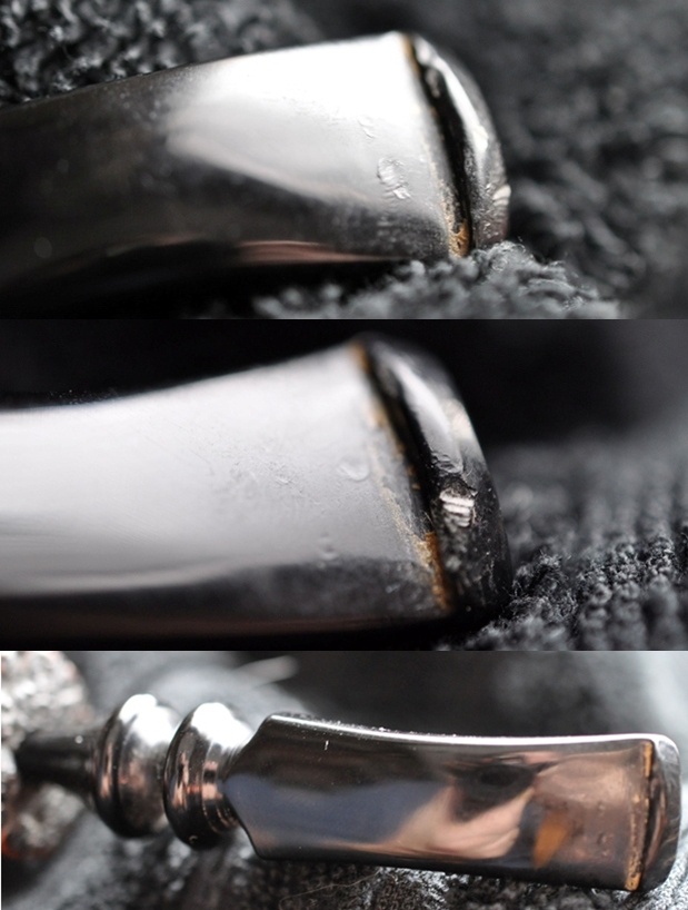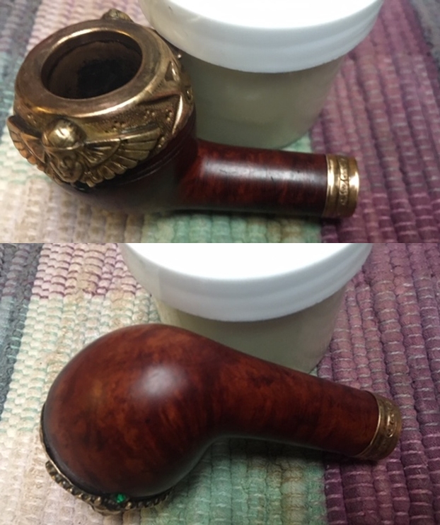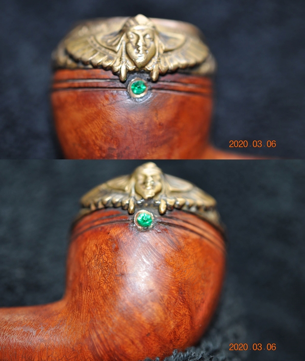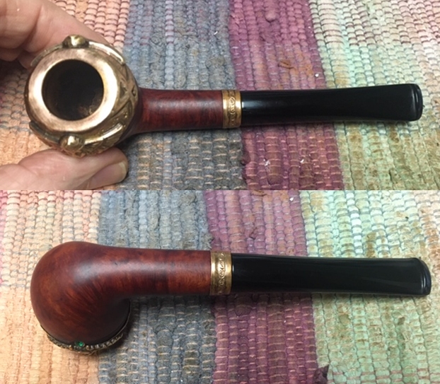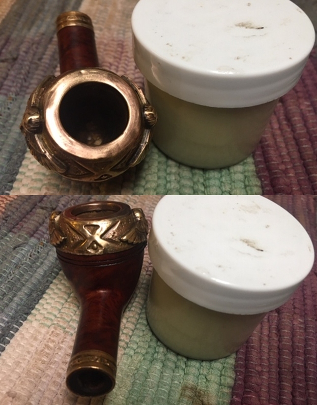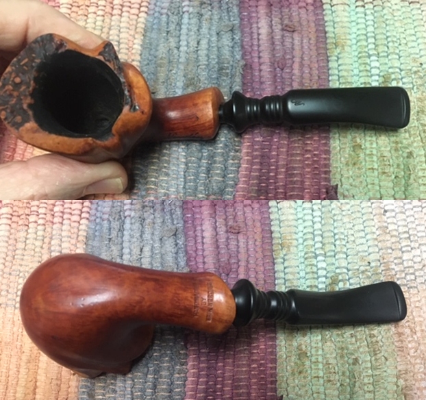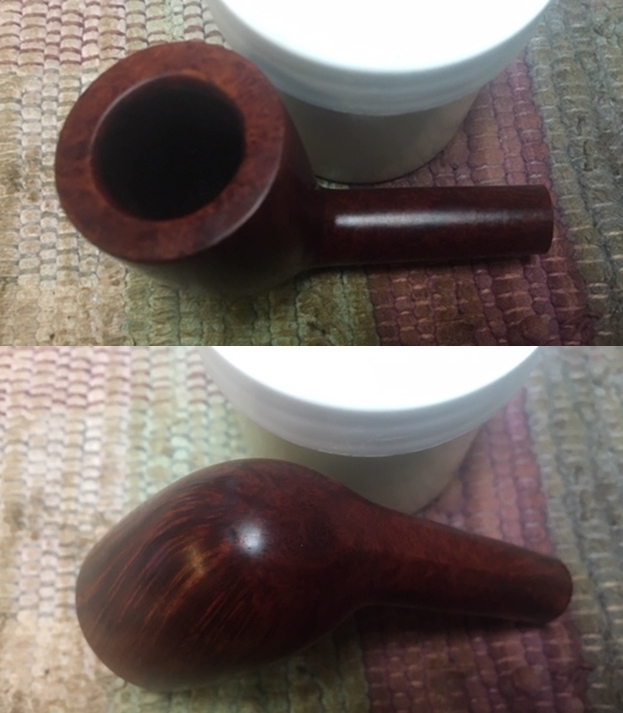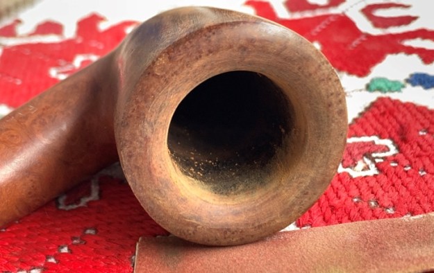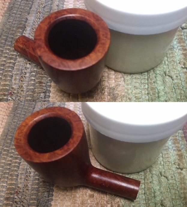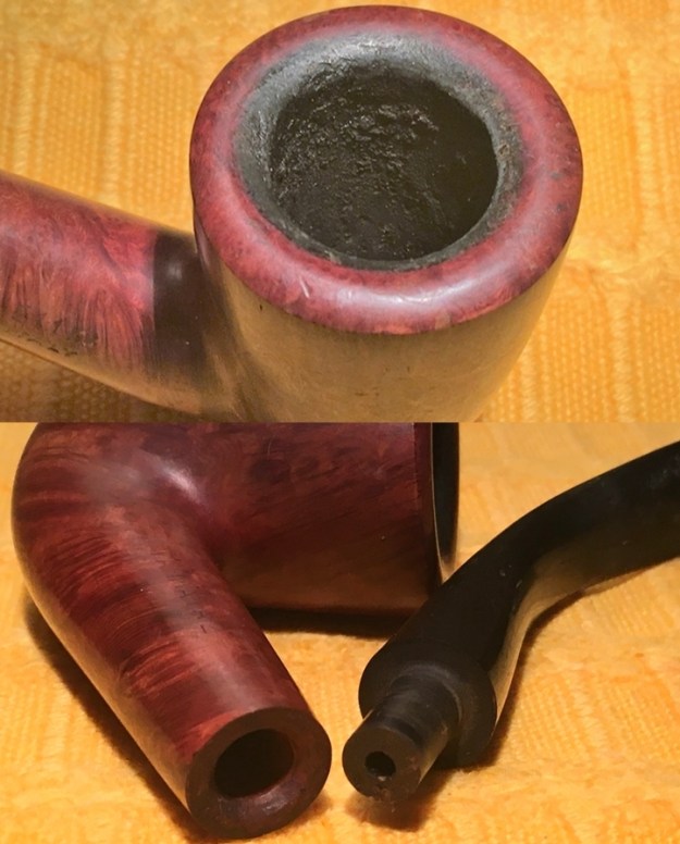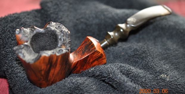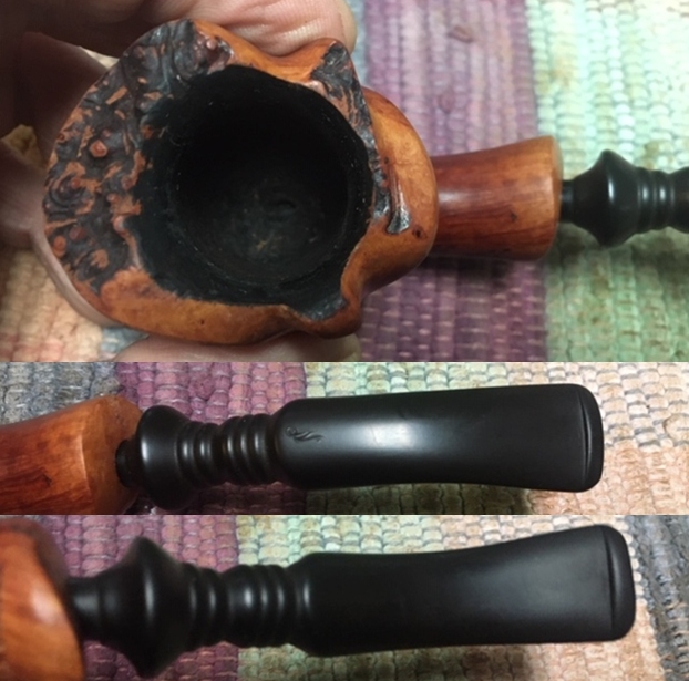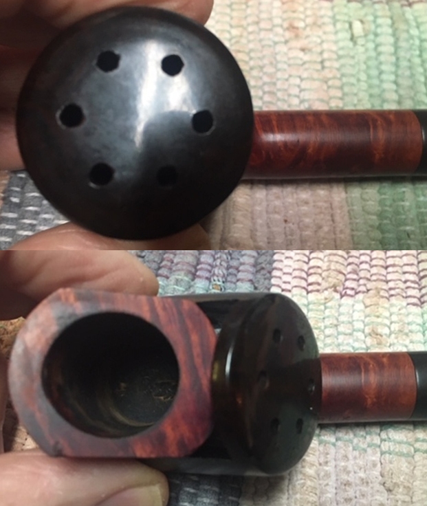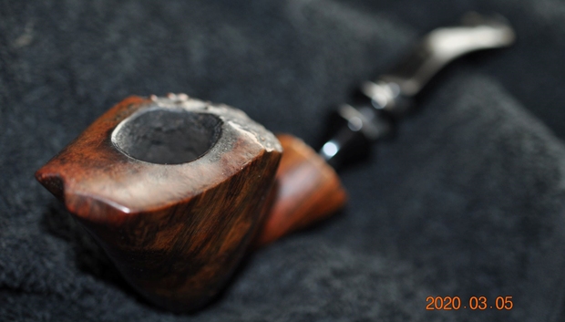 He took photos of the bowl and rim top to show their general condition. You can see the tars on the inner edge of the beveled top. The cake in the bowl is quite thick and there is tobacco debris on the walls of the bowl. The finish on the bowl is dull but still very stunning.