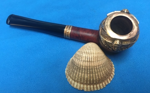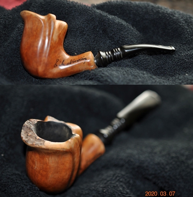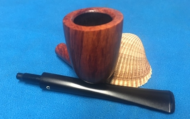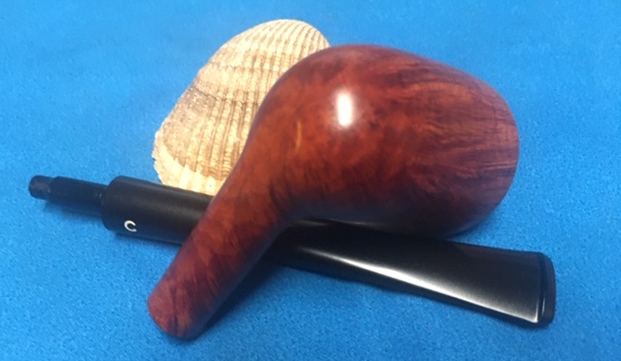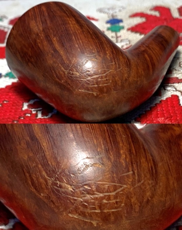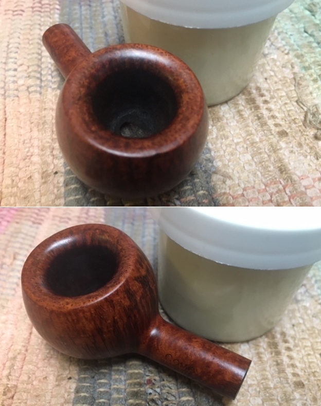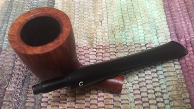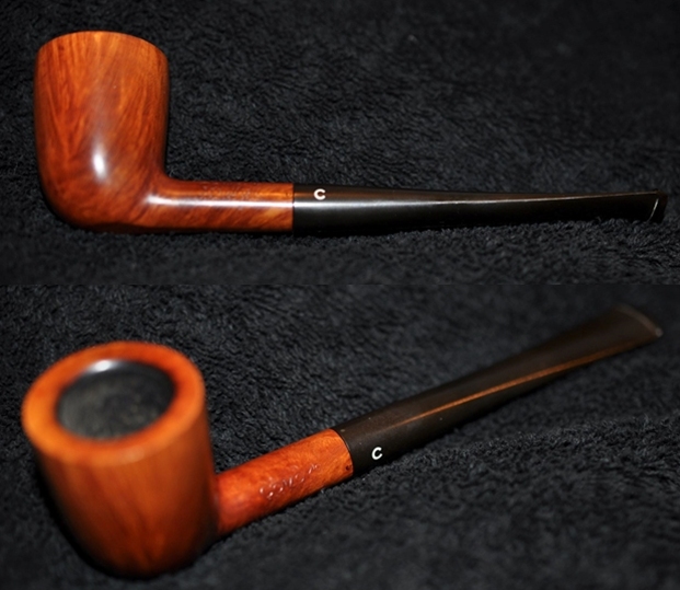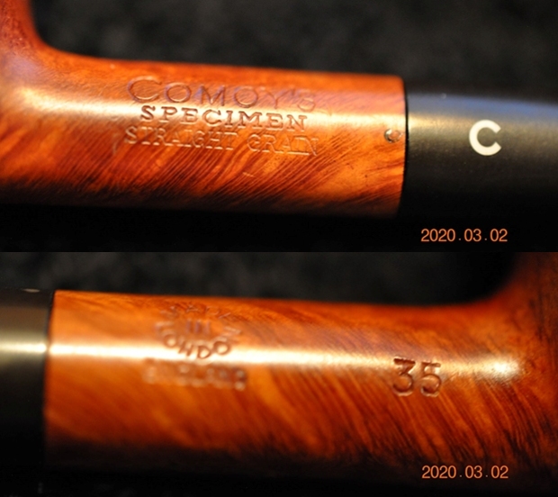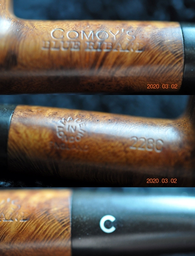 He took photos of the stamping on both sides of the shank to capture it for me. The first photo shows the left side of the shank and the stamping as noted above it shows the inset three part C inlaid on the side of the stem. The second shows the right side of the shank with the COM stamp and shape number.