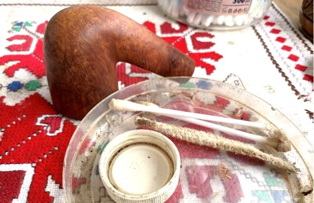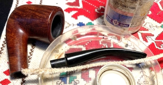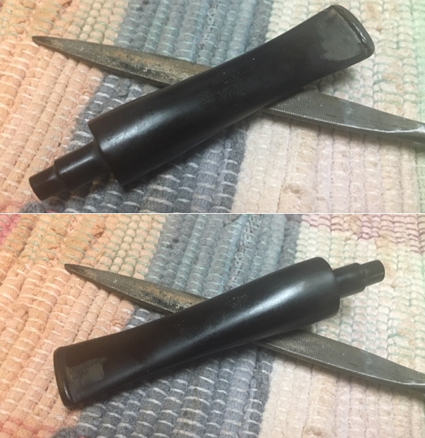 I removed the stem from the shank and took a photo of the pipe at this point. Like other Comoy’s I have worked on this stem had a metal tube in the tenon to strengthen it in what is often a weak point on a pipe.