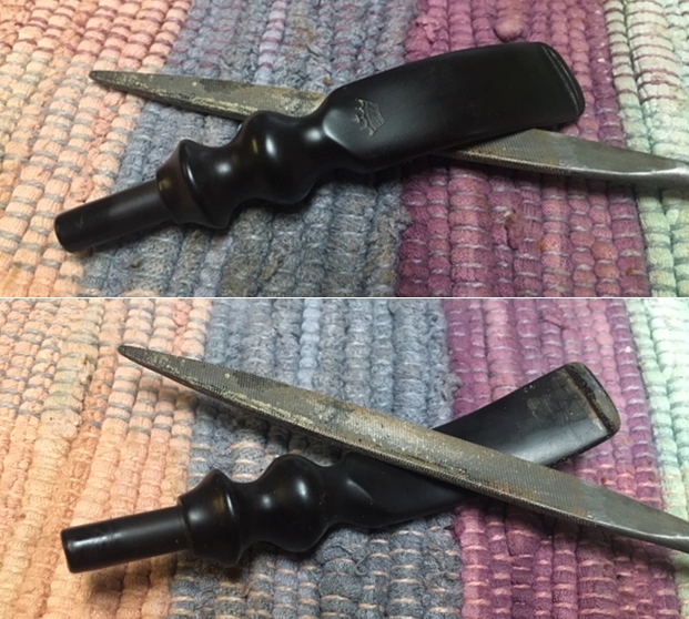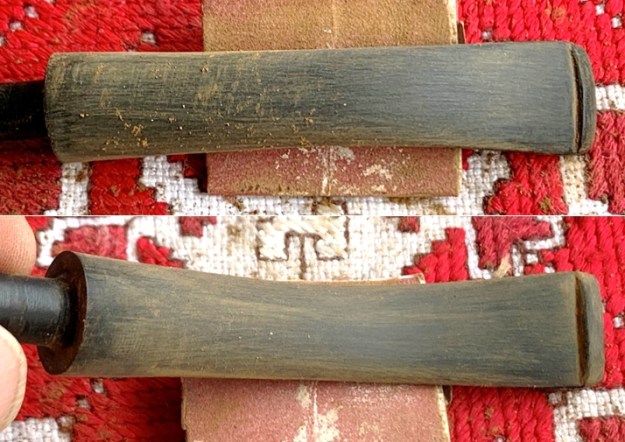 This pipe also has a slender stem but it is straight and has a great fishtail blade. Once again the surface of the top and underside of the stem is oxidized and dirty but it is quite free of tooth marks and only has a minimum of chatter.