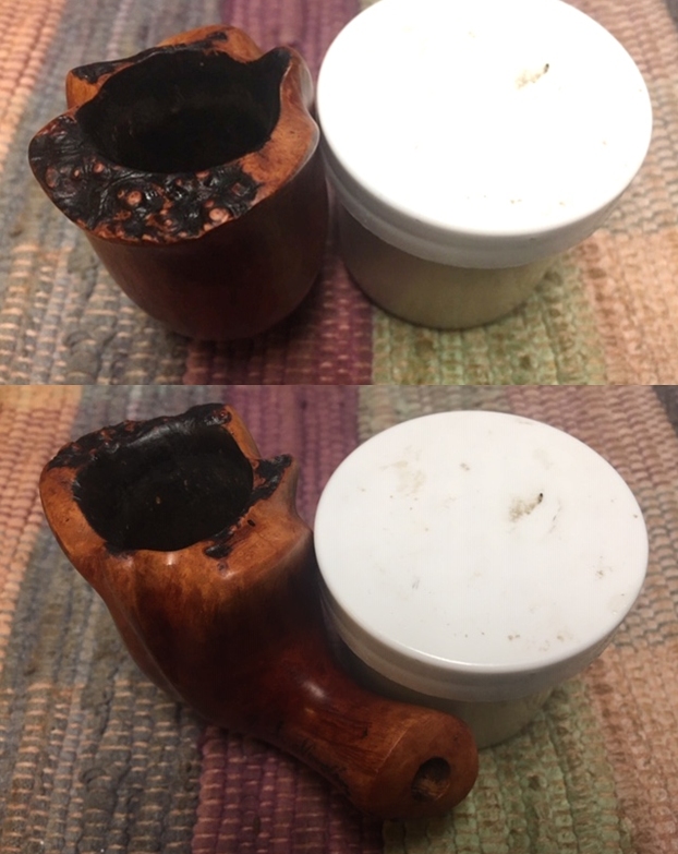 I worked some Before & After Restoration Balm into the surface of the briar with my fingertips to clean, enliven and protect it. I let the balm sit for a little while and then buffed with a cotton cloth to raise the shine. The photos show the bowl at this point in the restoration process.