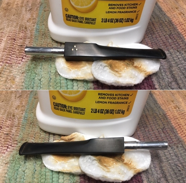 I set the bowl aside and turned my attention to the stem. I rubbed the stem down with Soft Scrub on with a cotton pad and it removed the oxidation and the calcification build up. It looked a lot better.